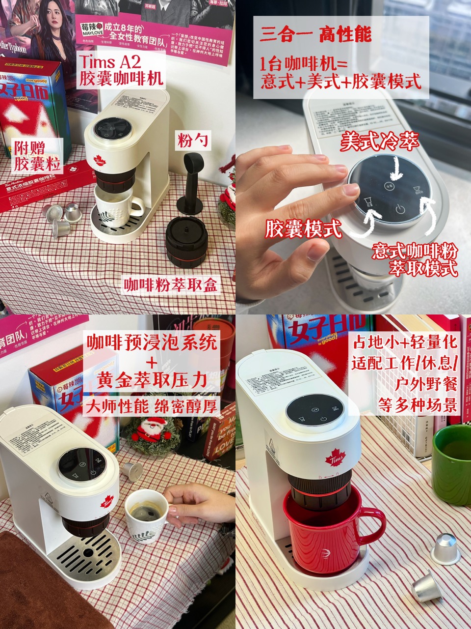 轻量且全能的Tims三合一胶囊咖啡机,用完我们的优惠不到600即可入手,还能叠加平台大促活动到手更划算!圣诞&新年季,送礼自用两相宜,随咖啡机本机还附赠Tims门店同款胶囊。