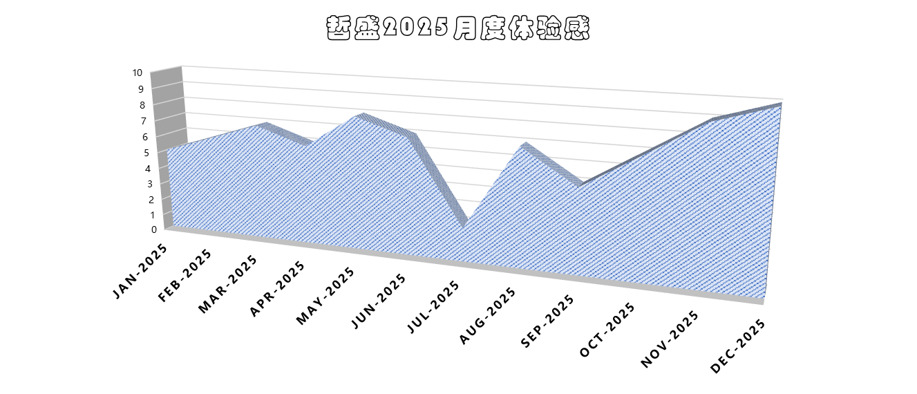 两人采用不同评分逻辑。滔仔给出整体满意的8.5-9分,源于毕业与入职的顺利过渡。哲盛则展示了一张月度情绪折线图,平均分6.6,并揭示7月(2分)与9月(5分)两个异常低谷,直观拉开两人一年境遇的对比,极具戏剧性。