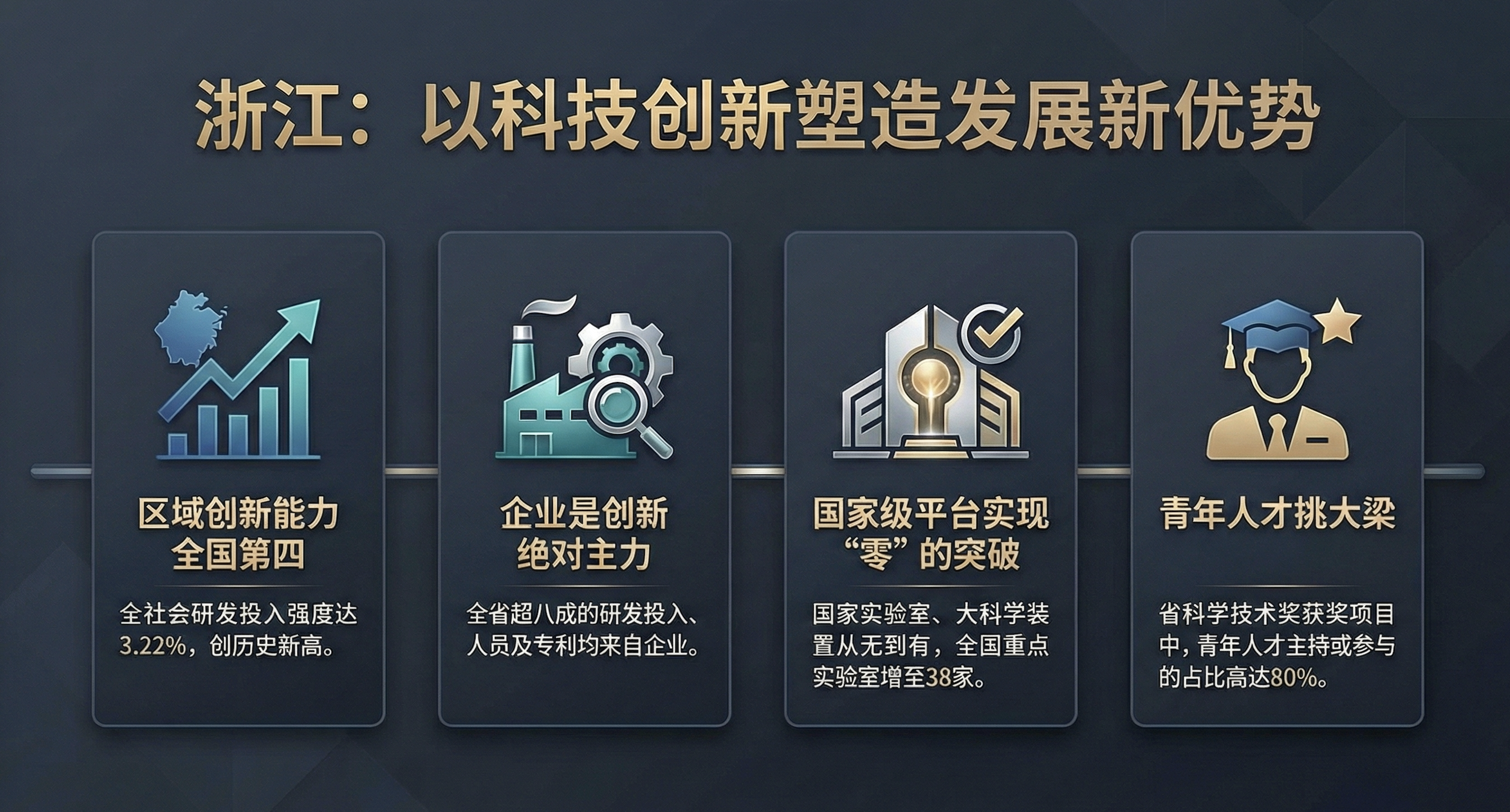 浙江省通过深入推进教育、科技、人才一体化改革和科技创新与产业创新的深度融合,将科技创新这一“关键变量”转化为高质量发展的“最大增量”。