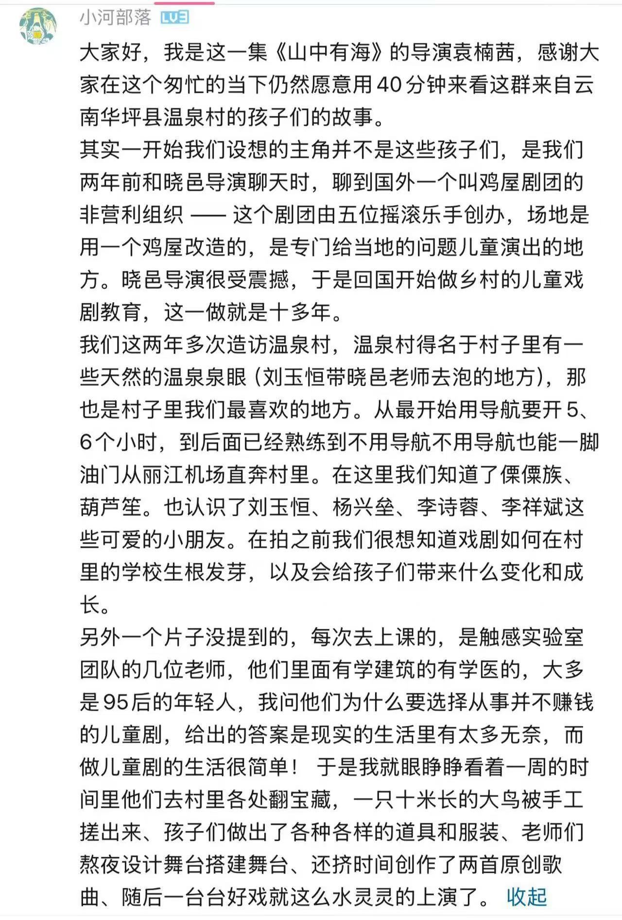 以刘晓邑触感实验室所做的推广戏剧到偏远乡村里孩子们为视角,将“戏剧”进行再定义:也是从「殿堂」到「乡野」的过程