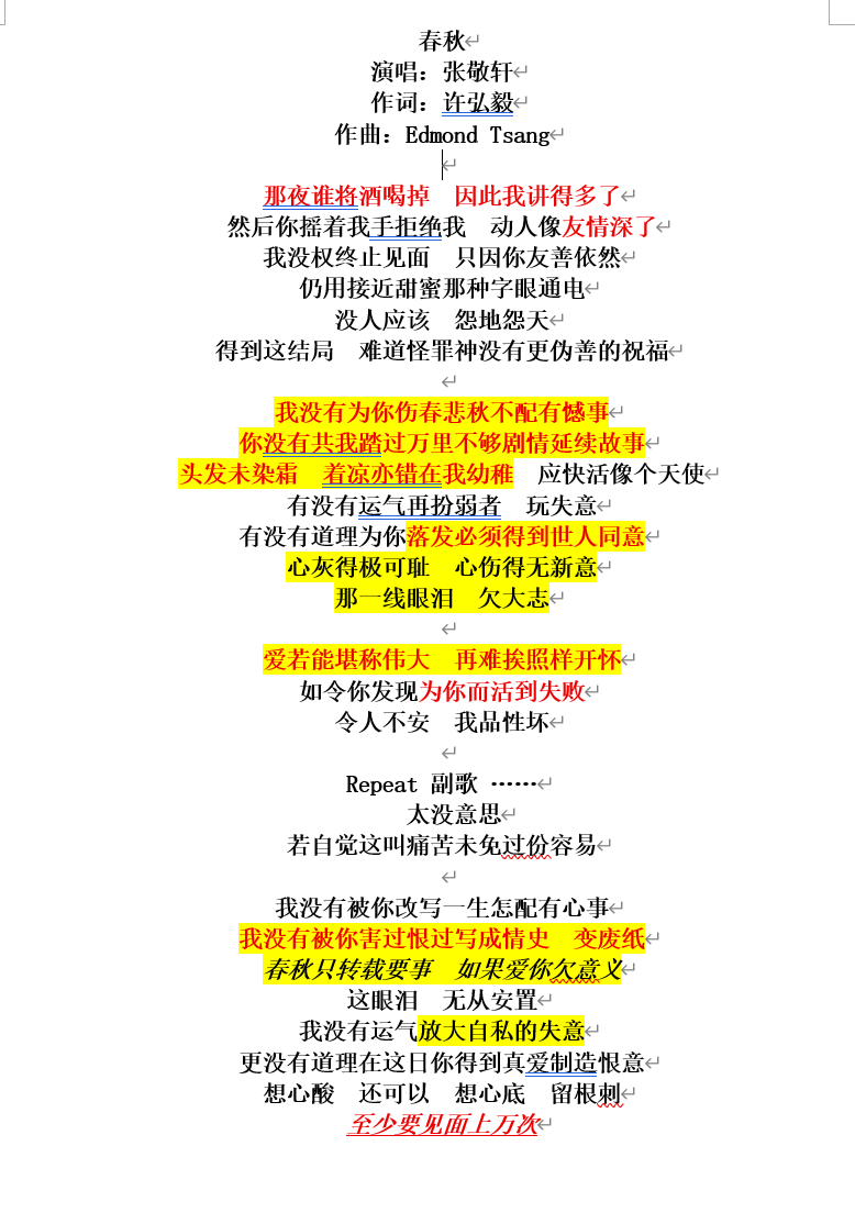 想讲张敬轩好久了,但是直到第六期才讲到(),因为总想把hins的有些歌编成一个合集,能更有意思一点。夕爷其实给hins写的歌不多,但是每一首都是精品。这首《春秋》于张敬轩,类似于《富士山下》于陈奕迅,ktv必点,唱完必哭。如果在亲密关系里,有一种痛比失恋更悲伤,那么只能是纠缠许久的爱而不得。这一点夕爷是很有经验的,所以才能将歌词写得这么痛。(悄悄八卦)