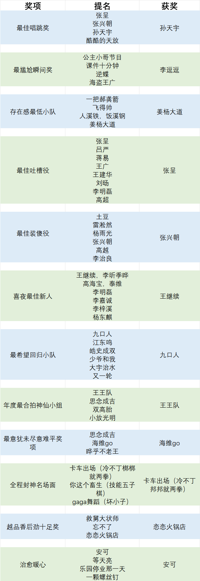 本期主播:wolf ,一心 ,菲尼,lion喜人奇妙夜第二季结束了,我们也是跟着这个节目做了很多节目,感谢这个节目给我们带来了很多快乐和话题。虽然喜夜节目中为喜人进行了颁奖。我们作为热心观众也为这个节目颁了一些我们设置的奖,表达我们对喜人的喜爱和给予的期望。由于这期节目的录制时间太长,所以分成了上下期,这期是上半期节目。上半期颁奖结果如下