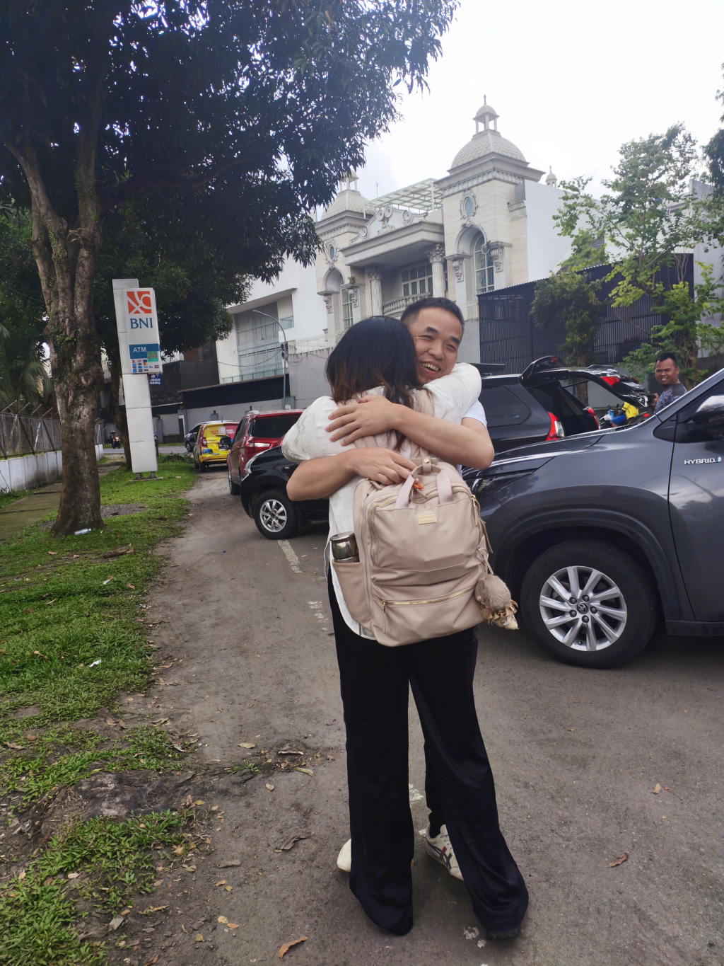 (成功与“转了5次机才来到棉兰”的丈夫团聚,徐云香供图)