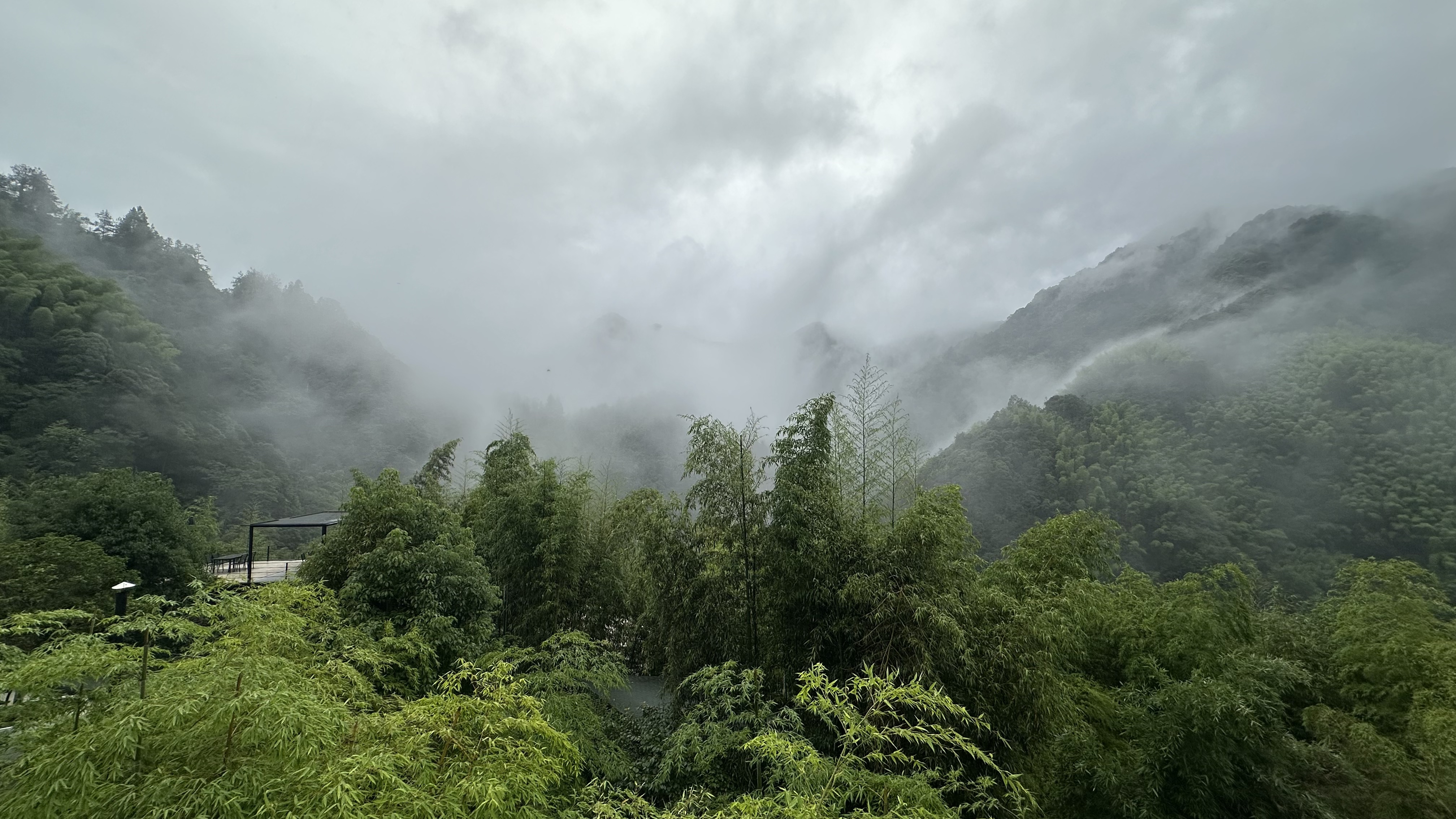 ▼临安指南村,淡季出游的雨中山色