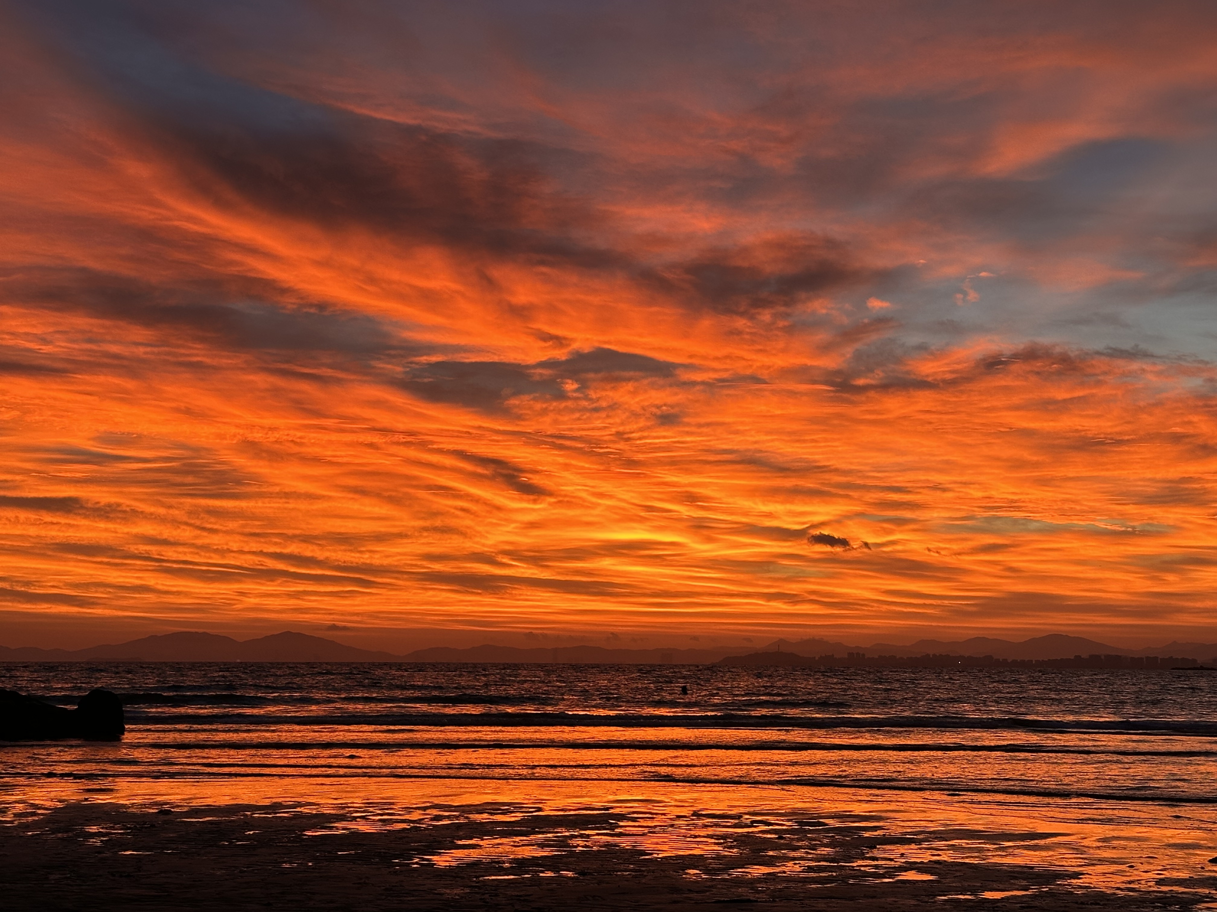 ▼海南陵水虎岭,一次平常的日落,随着云彩的变化意外邂逅了火烧云