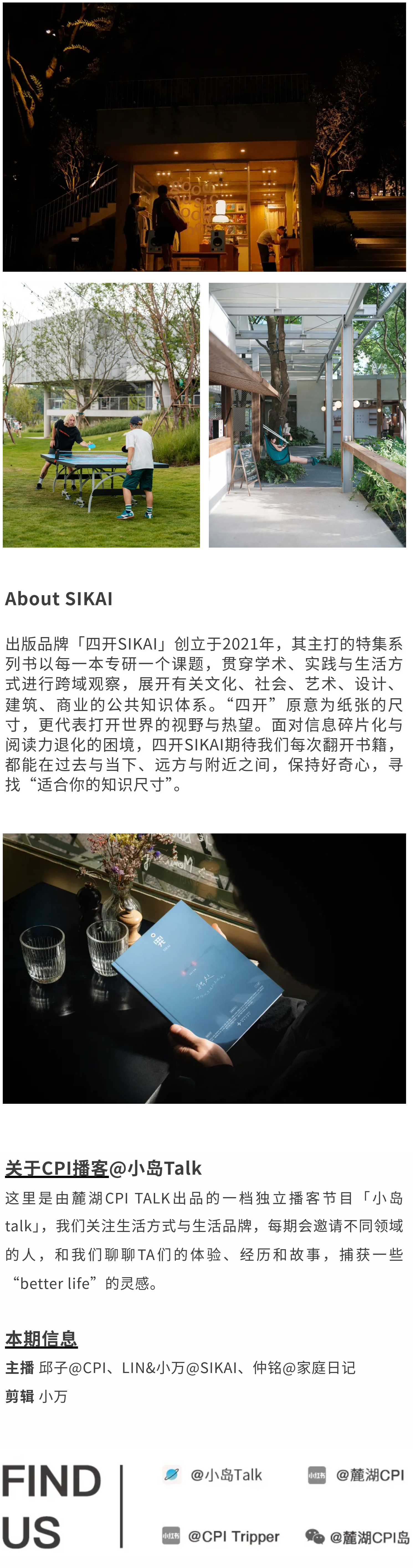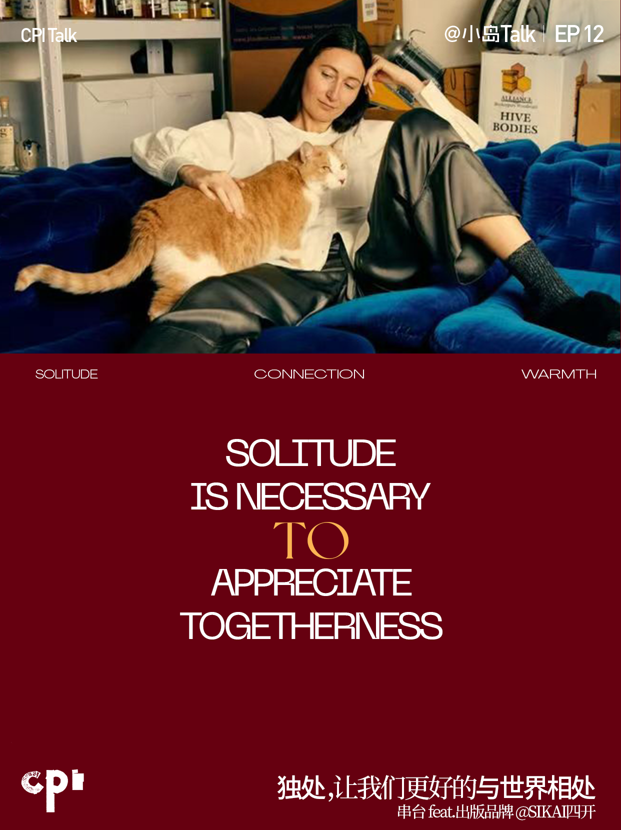 本期CPI TALK 串台 @出版品牌SIKAI四开。在这个需要温柔相待,舒适自在的世界中。我们和四开新书《独处》责任编辑@LIN、家庭日记创始人@仲铭,一起聊聊独处的可贵。从影像故事到科技AI,我们每个人都是一座独立的岛屿,漂浮着、迁徙着,学着找到自己、认识自己,也在这个过程中意识到人与人共处的必要性,发现情感链接的可贵。