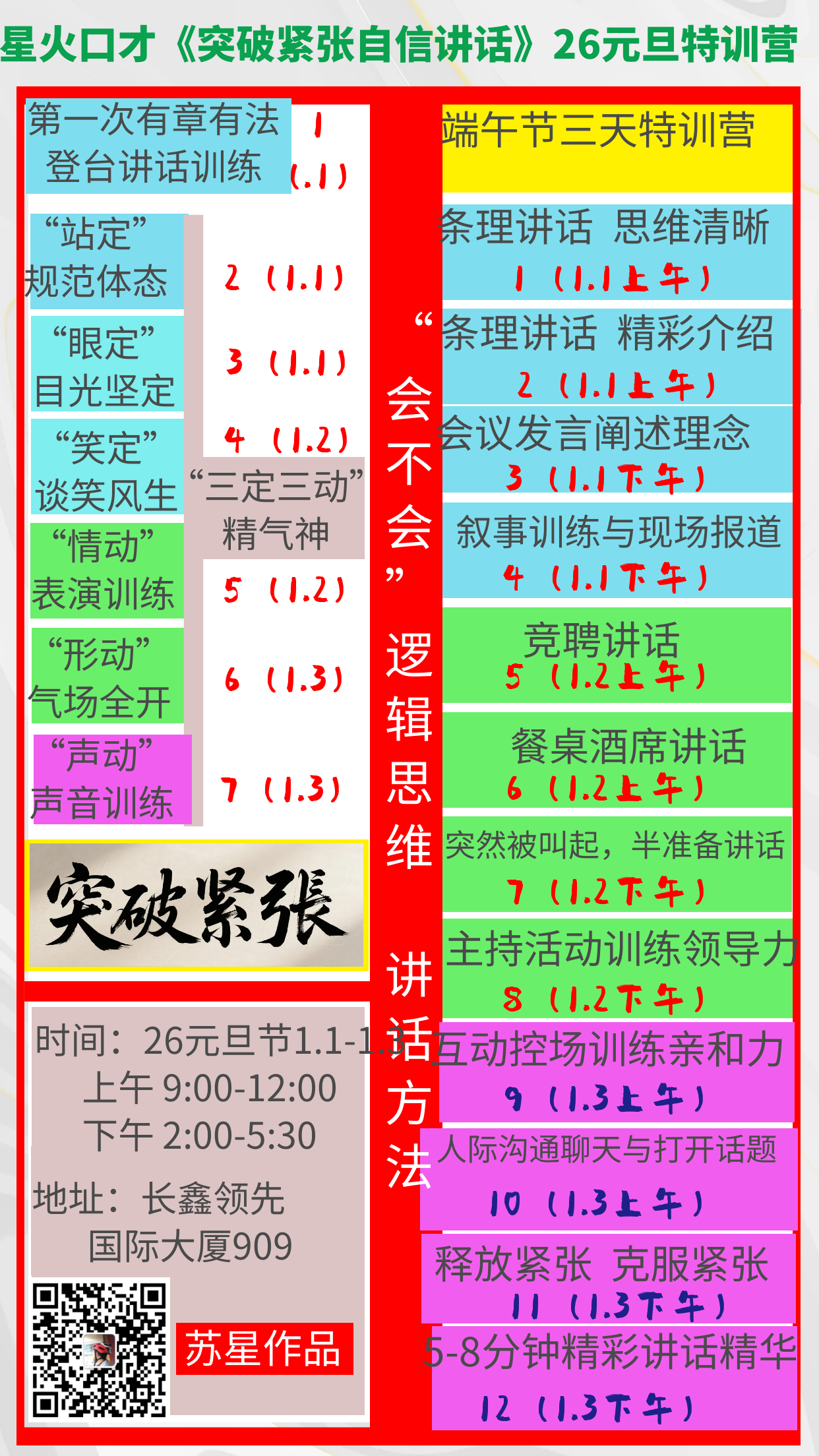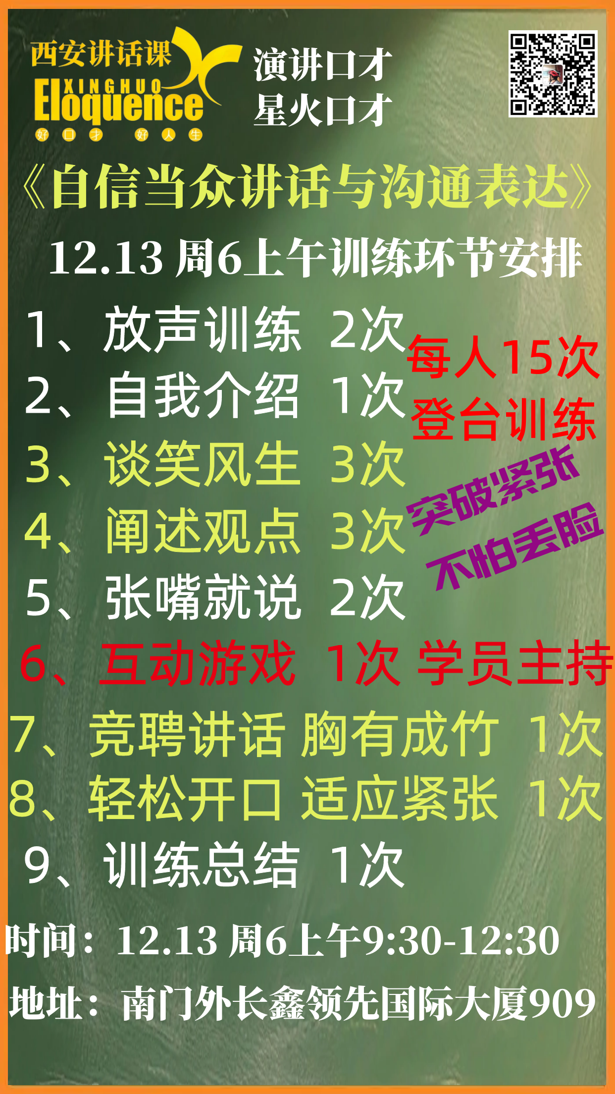 每节课登台亲身训练15次