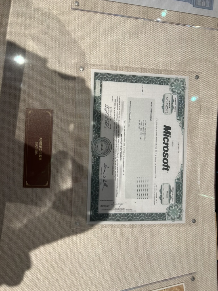 (图片拍摄于2025年12月9日,上海市,当年的微软公司纸质股票)