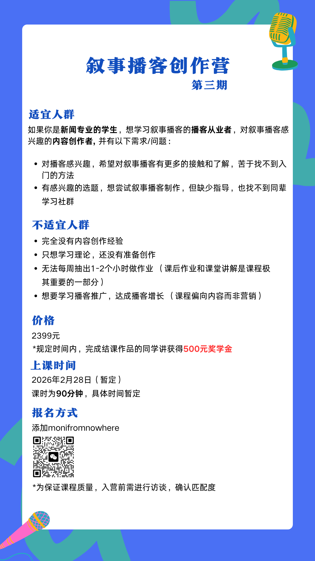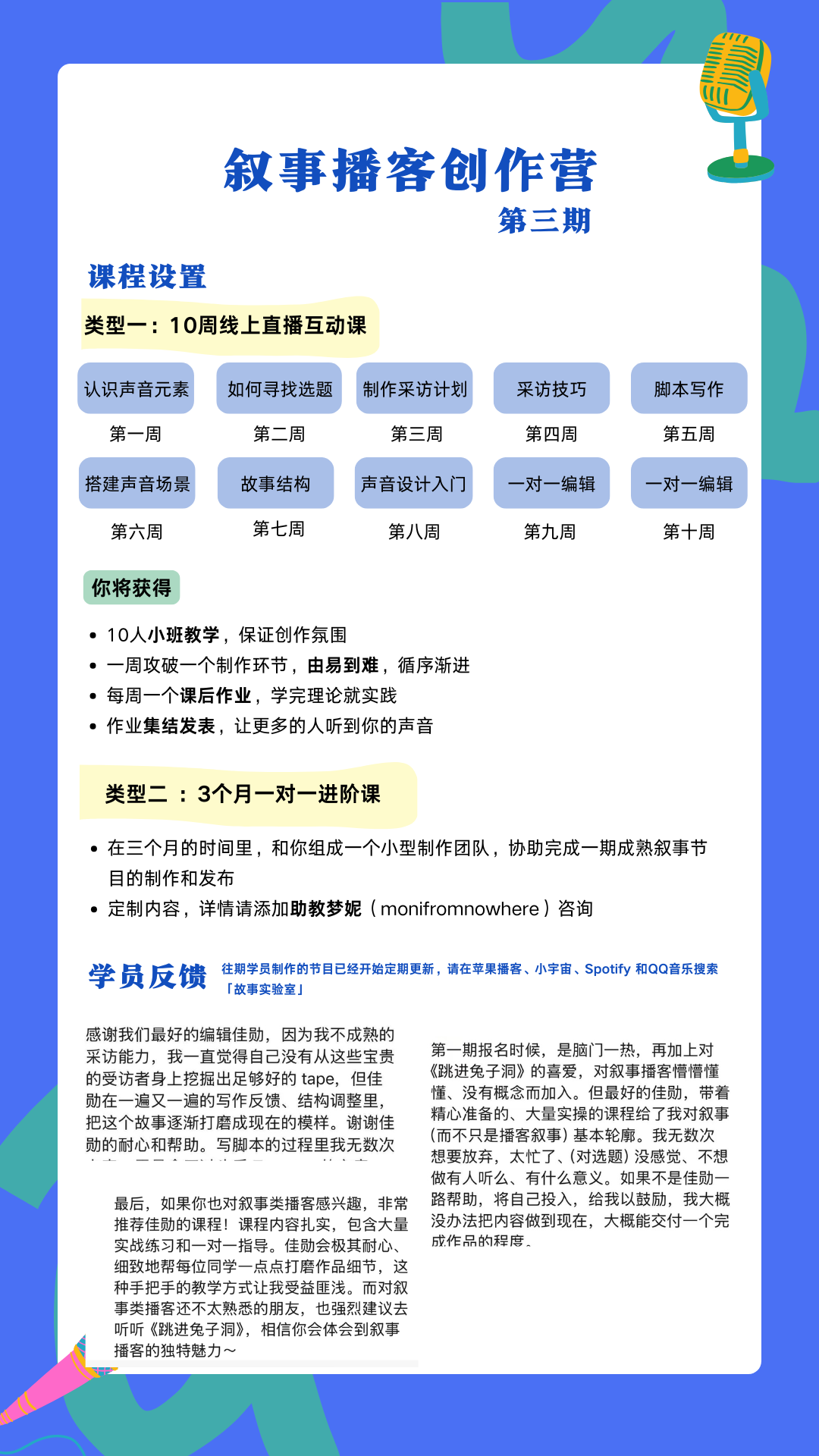 「故事实验室」是由来自各行各业,但都对用声音讲故事感到好奇、热爱的人们制作的一档叙事播客。如果你也想要尝试制作一期叙事播客,欢迎来参加我们的创作营(详情请添加monifromnowhere)。期待与你一起创作,一起玩!