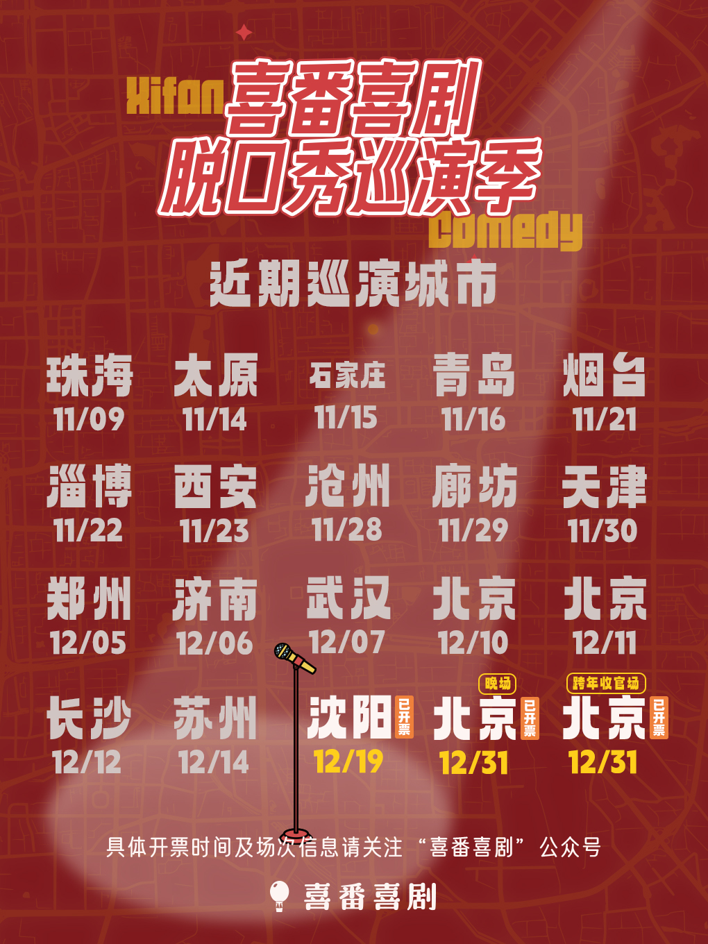 各大购票平台搜索“喜番喜剧脱口秀巡演季”即可购票