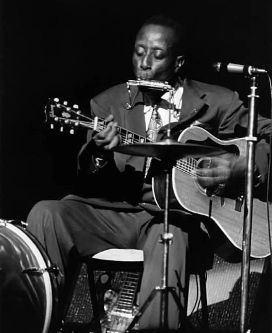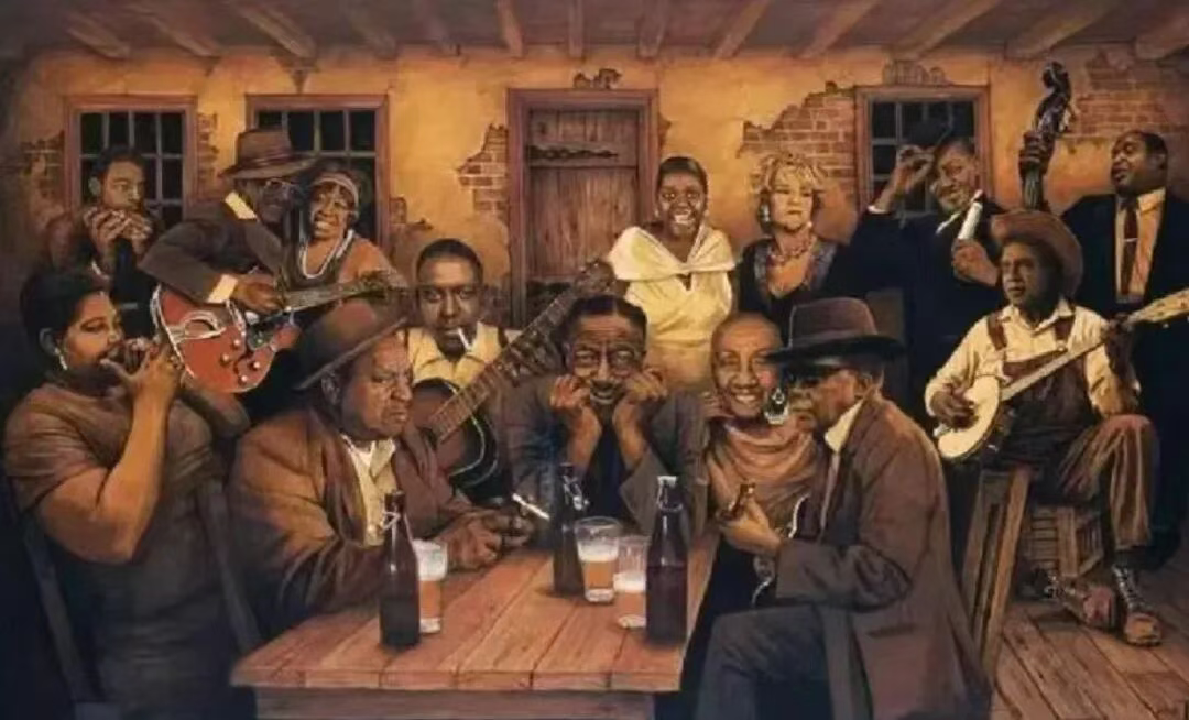 那个年代只有上层的白人才能弹钢琴,所以较为廉价的吉他和口琴就成为了布鲁斯最早的乐器。黑人奴象们大多也不懂乐理,但种族优势赋予了他们惊人吾乐的天赋。