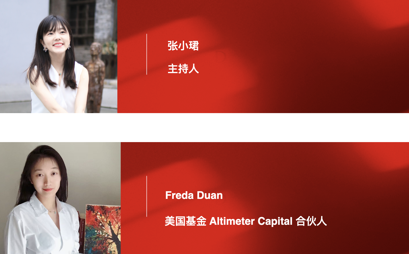 我们今天的嘉宾Freda Duan就来自这个名叫Altimeter Capital的基金,她担任合伙人。