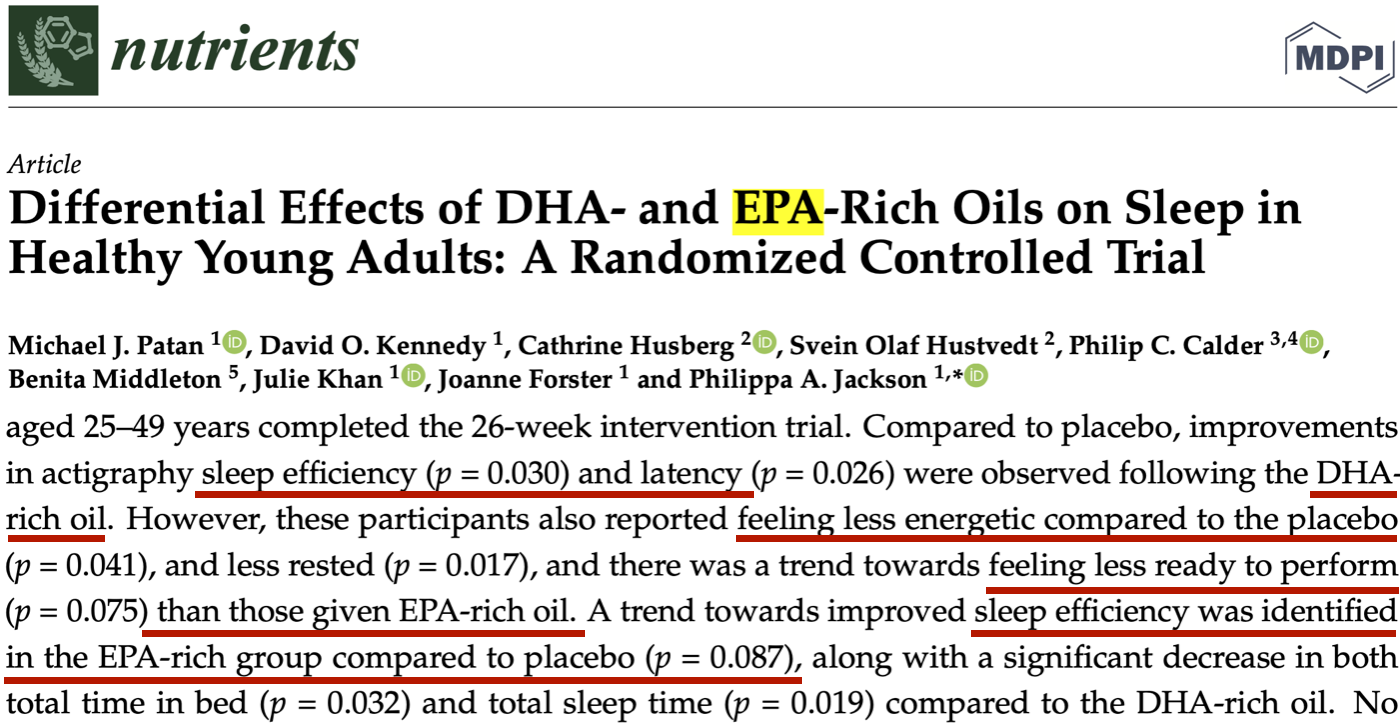 原因三:高EPA提升睡眠效率和睡眠质量,醒后感觉良好,即便睡眠时长并不长