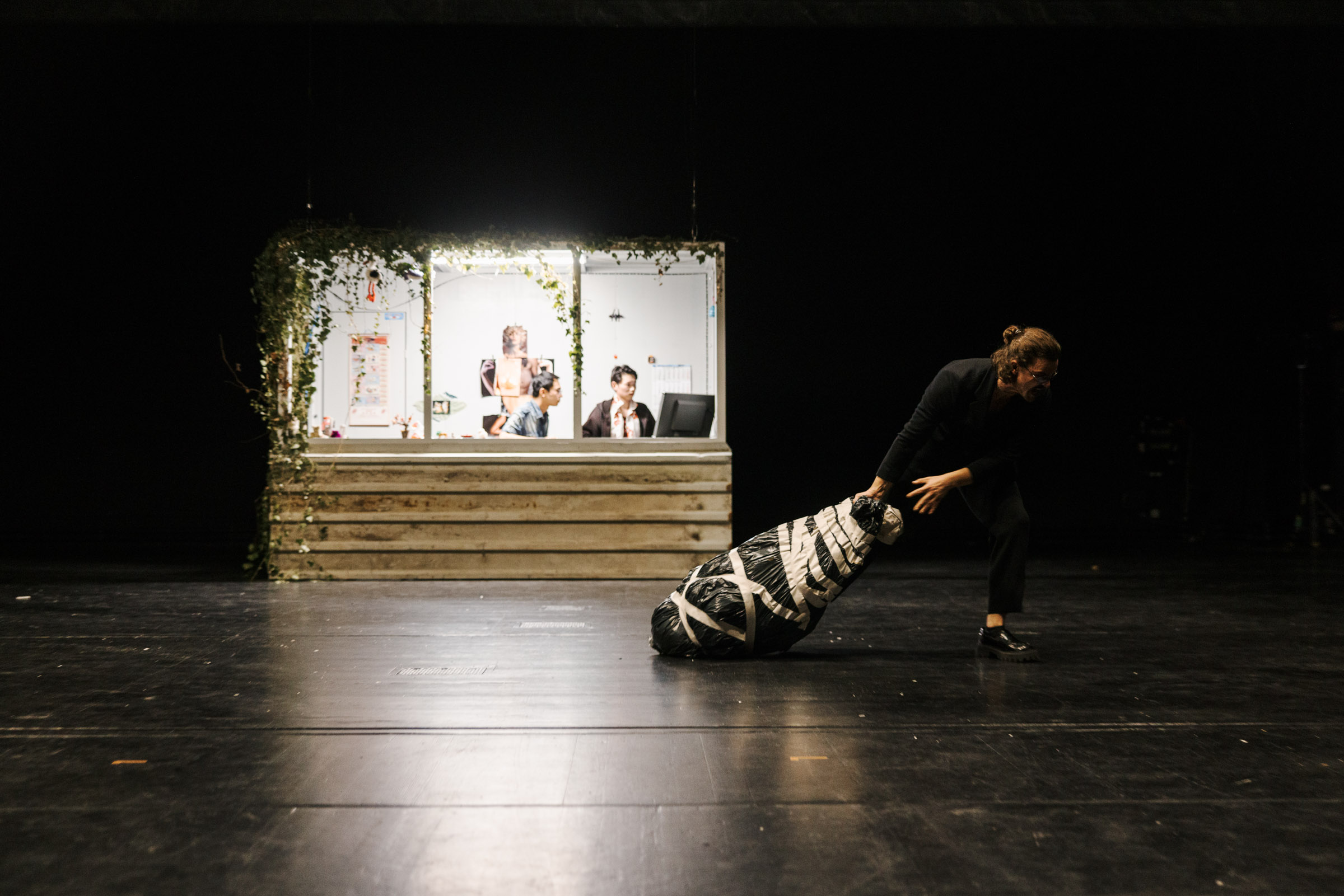 创作谈:当乐池也作为表演场地的时候,损坏带来的方案危机;用歌唱和说话的差异表达“黑白”和“彩色”世界、小人物的社会性表演;简单词语的重复带来的情绪变化;不是没有solo,而是solo变成了音乐、文本、人物和舞台交织的结合...