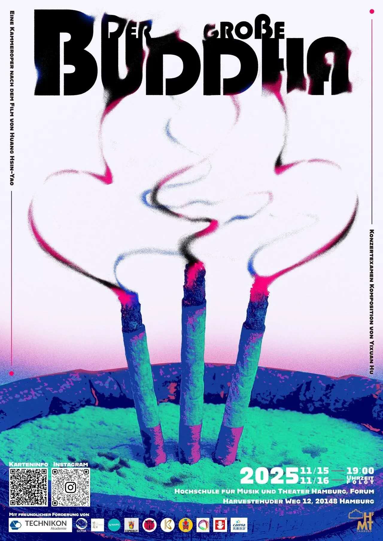 《大佛》是青年作曲家胡一轩创作的室内歌剧,作为其在汉堡音乐与戏剧大学(HfMT)作曲系 Konzertexam 的毕业项目。本歌剧改编自台湾导演黄信尧的同名短片,并以黑色幽默的方式,艺术性地反思了阶级歧视、宗教伪善与对女性的暴力。