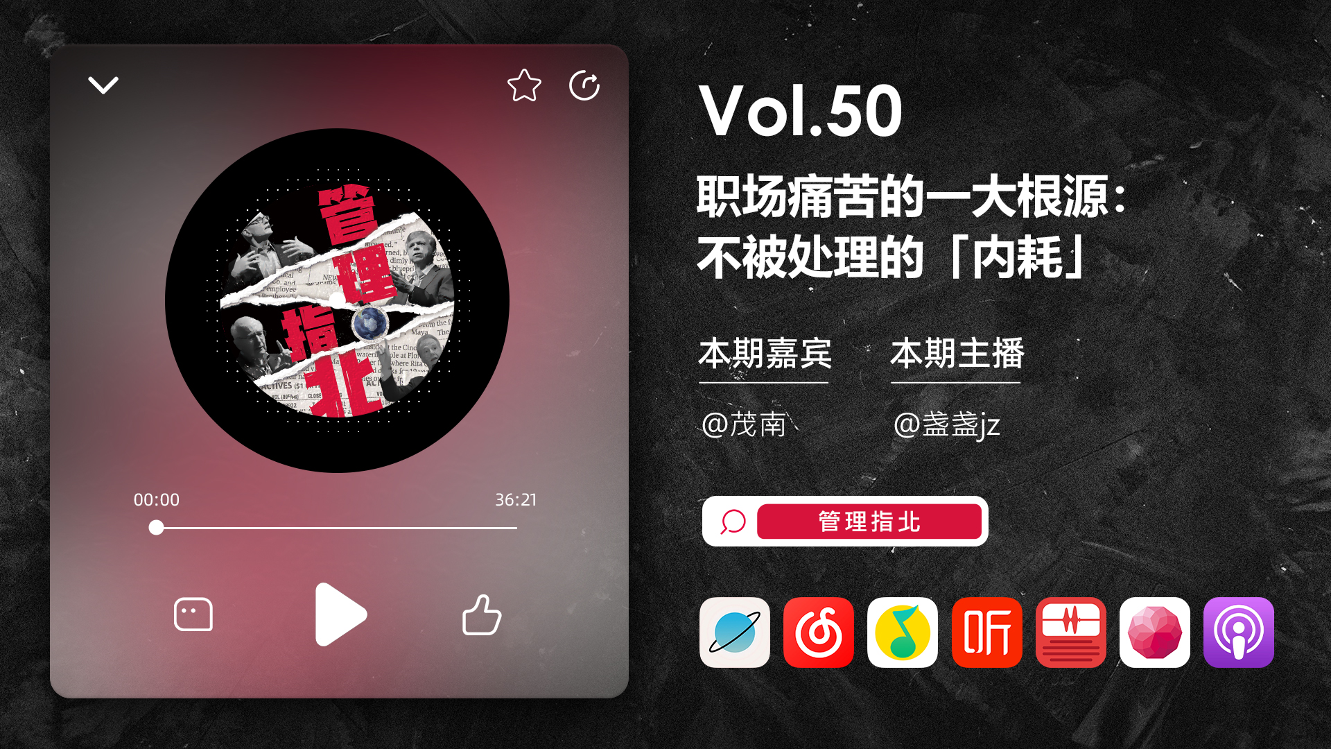 《管理指北》是一档唠「管理」话题的泛职场播客节目。让我们共话那些「管理」的阵痛与高光。每两周周一晚更新,欢迎你的订阅~