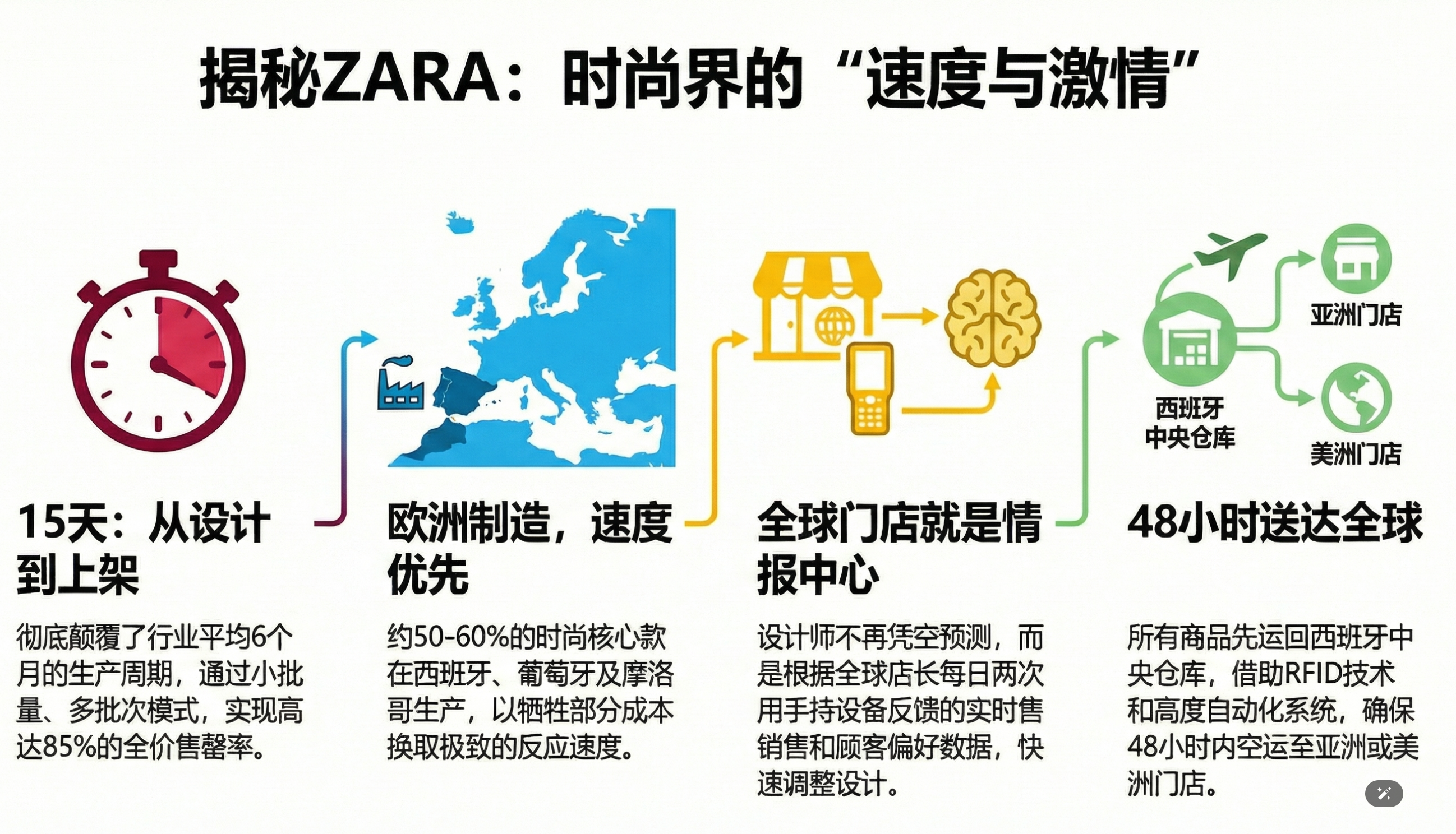 - 核心议题:Zara如何实现15天从设计到上架的极速响应,远超行业平均的6个月。