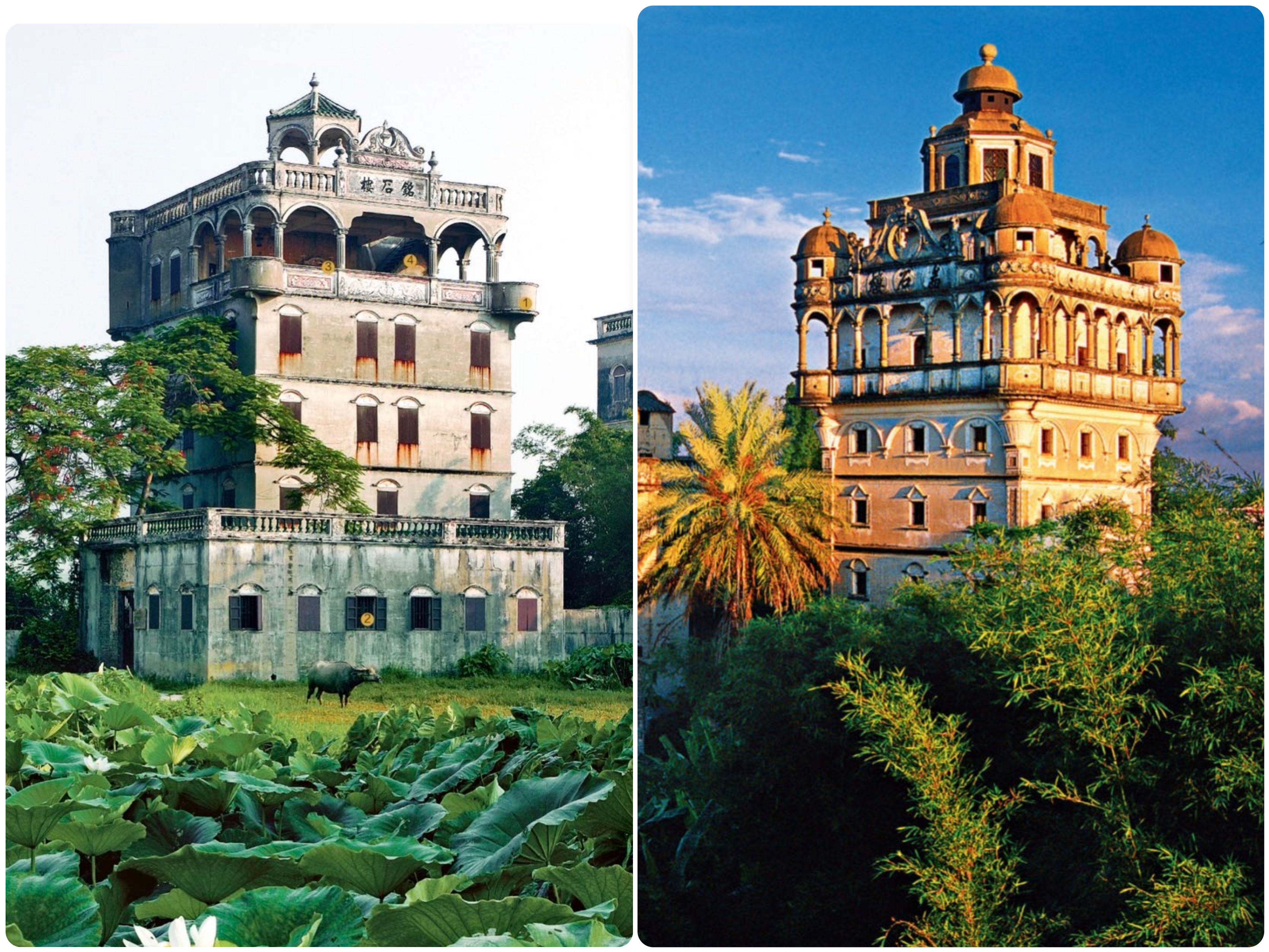 ↑ 自力村铭石楼(左)与锦江里碉楼(右)