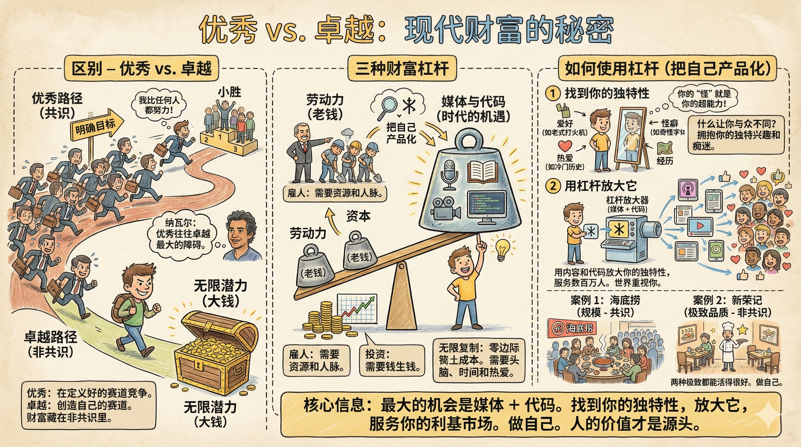 在这个人人都在“卷”优秀、拼效率的时代,为什么说“优秀”反而成了通往“卓越”的最大陷阱?本期节目我们深度拆解《纳瓦尔宝典》的核心财富逻辑。