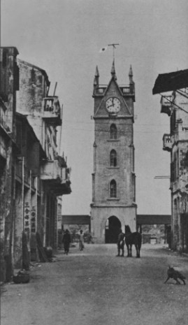日据时期海口的钟楼,当时还挂着红白太阳旗