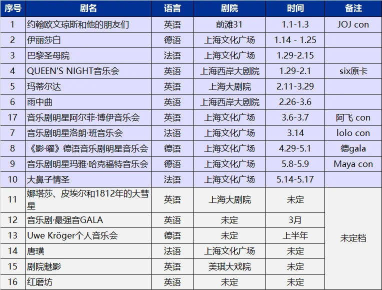 ● 明年年初真是音乐会云集!下面这些音乐剧演员(们)也宣布了各自的个音排期。有阿飞、有JOJ还有其它德奥男演员们,大家表示明年会在音乐会里听到无数次《剧院魅影》