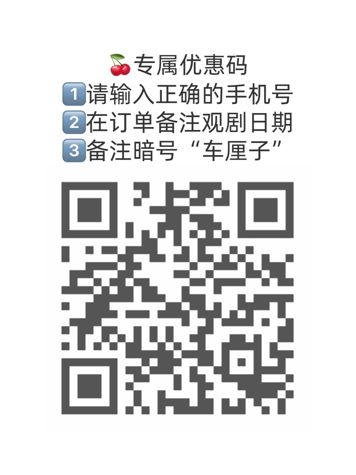 🎫有兴趣的小伙伴可以扫码进行购票,订单备注想观看的演出日期和暗号“车厘子”。