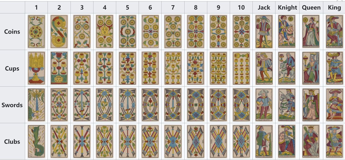马赛体系的全体小阿卡纳牌(Minor Arcanas in the Tarot de Marseille)