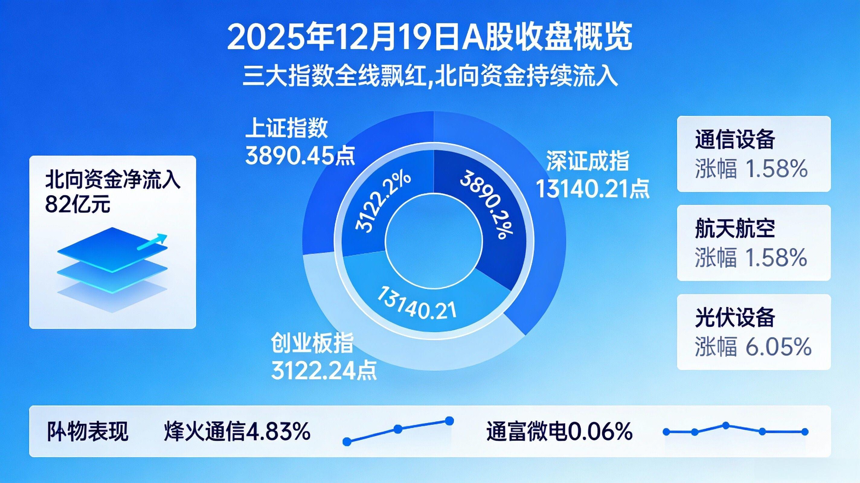 2025年12月19日,A股三大指数集体收涨,市场呈现普涨格局,个股赚钱效应明显增强。