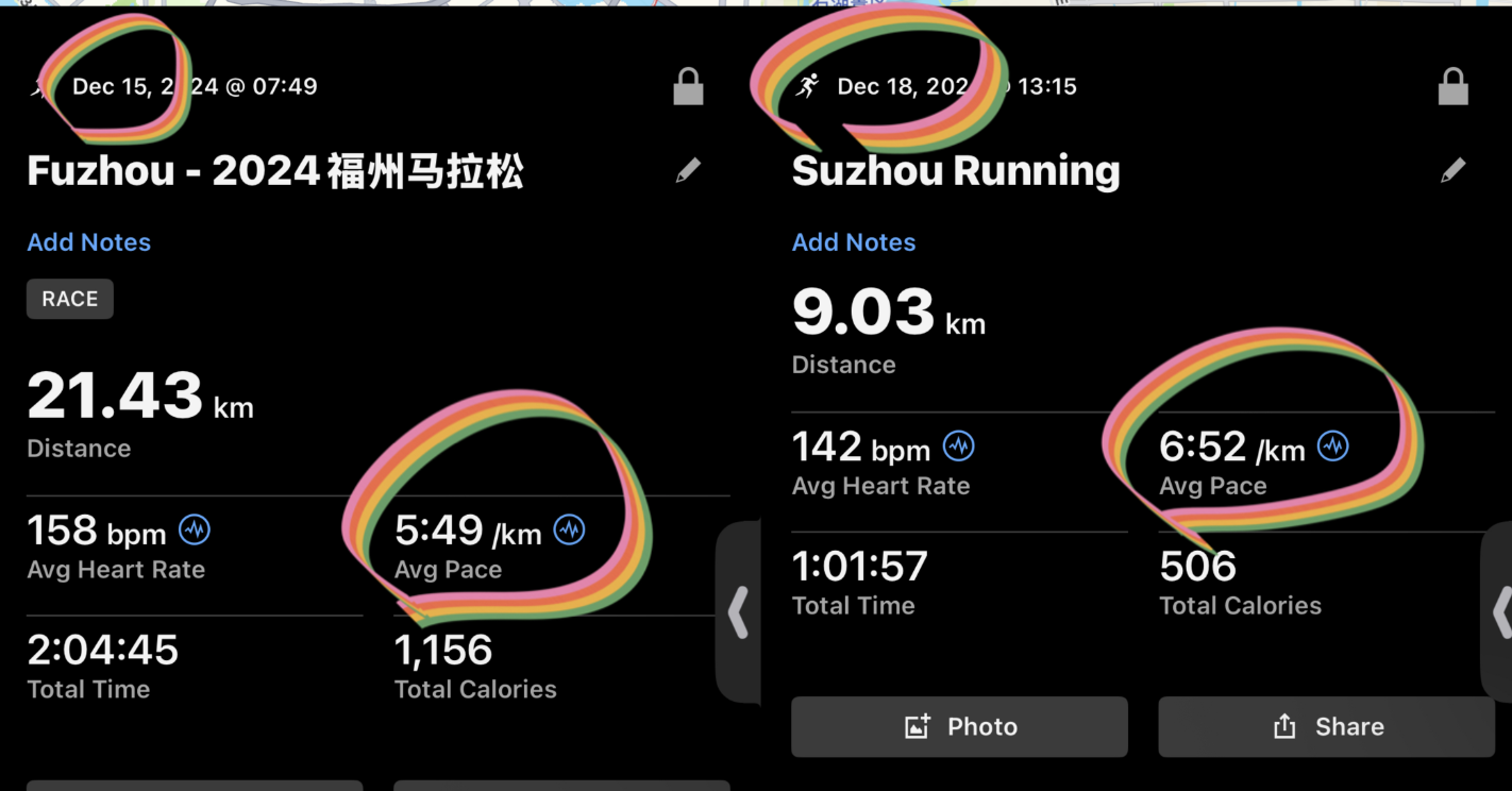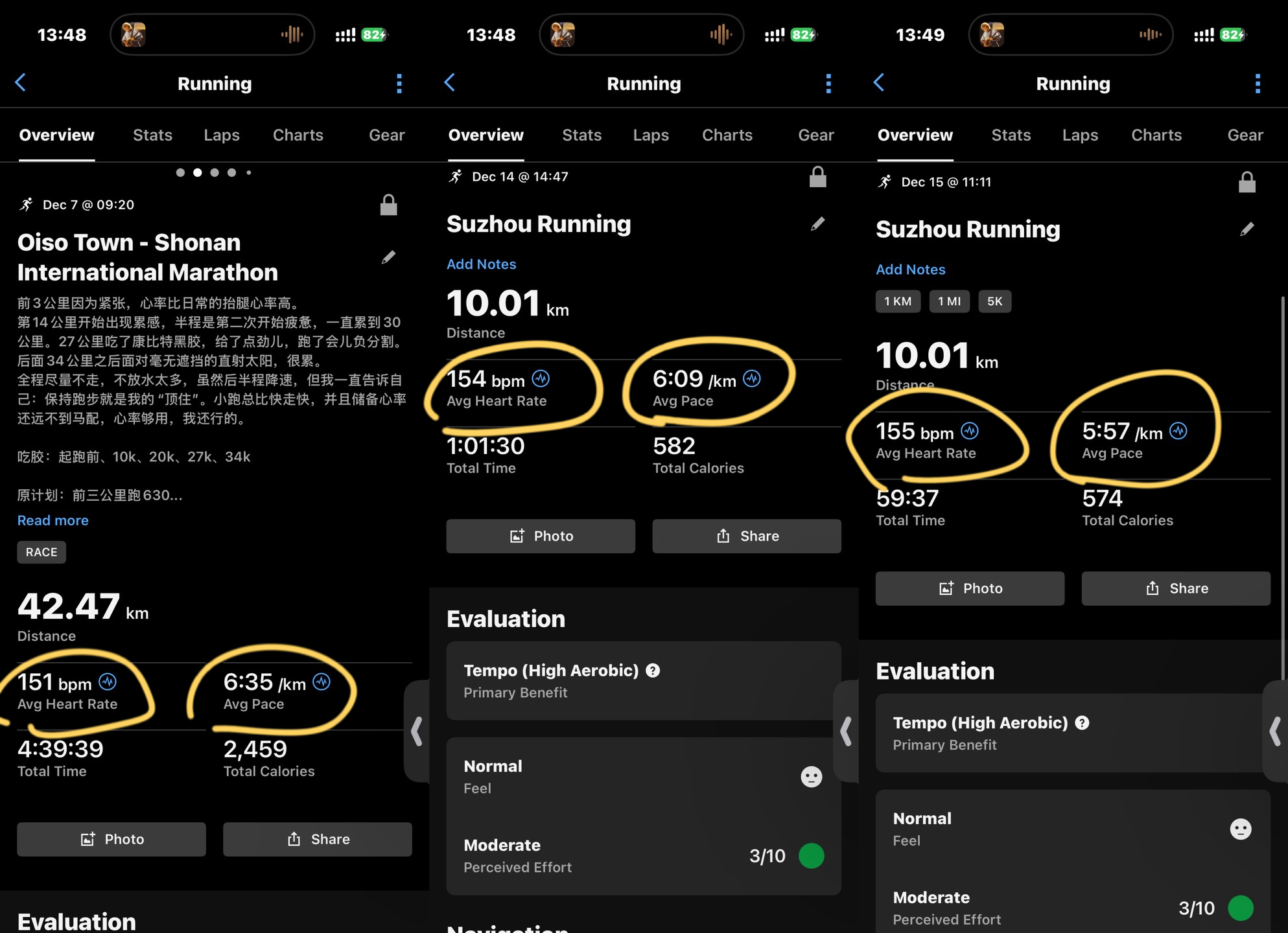 2️⃣日常跑有点摸不清自己的区间、状态时好时坏,但结果赛中出乎意料的超常发挥。