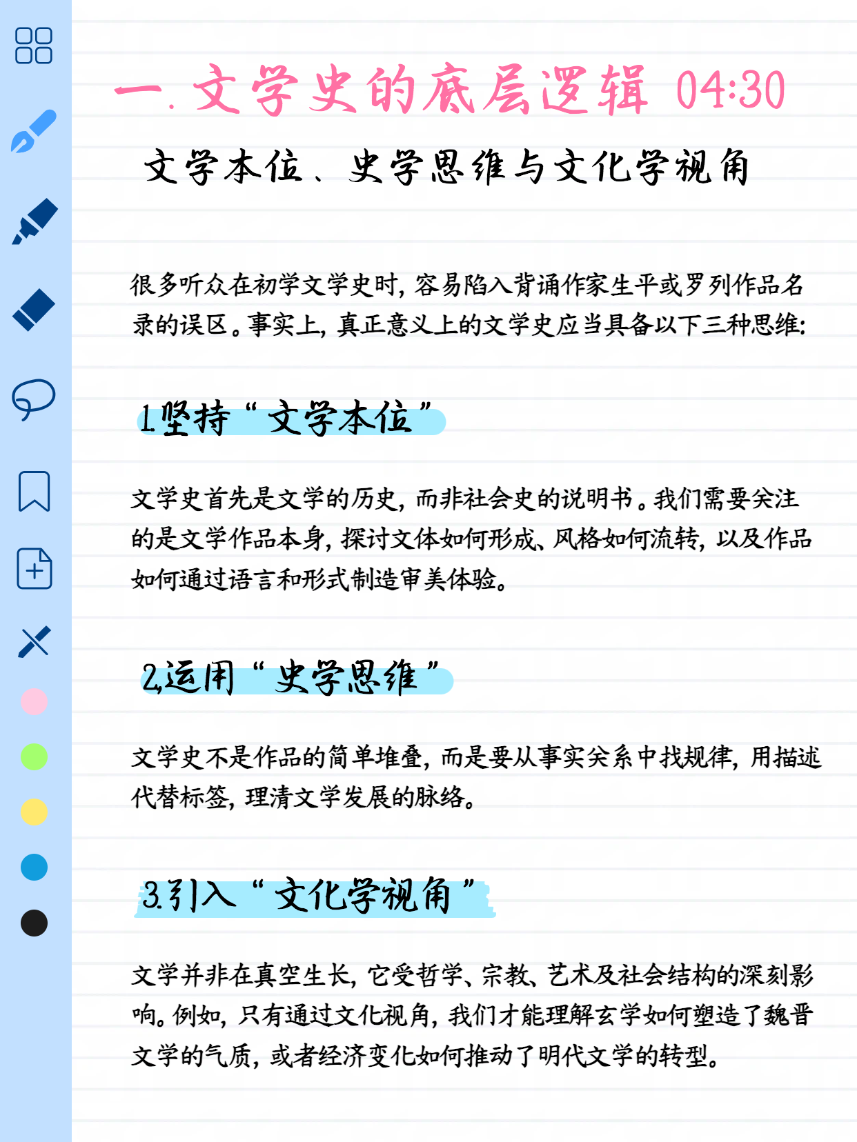 04:30 文学史的底层逻辑:文学本位、史学思维与文化学视角