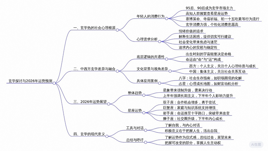 关键词:玄学|年轻人|消费|占星|八字|2026运势|中西结合|命格|社会关系|个人主义|食神|官杀|寺庙祈福|情绪价值|心理安慰|土星|相生相克|星座运势|流年|能量石