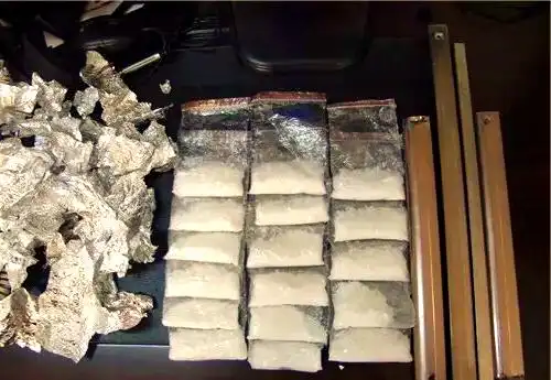警方缴获毒品以及运毒工具↓