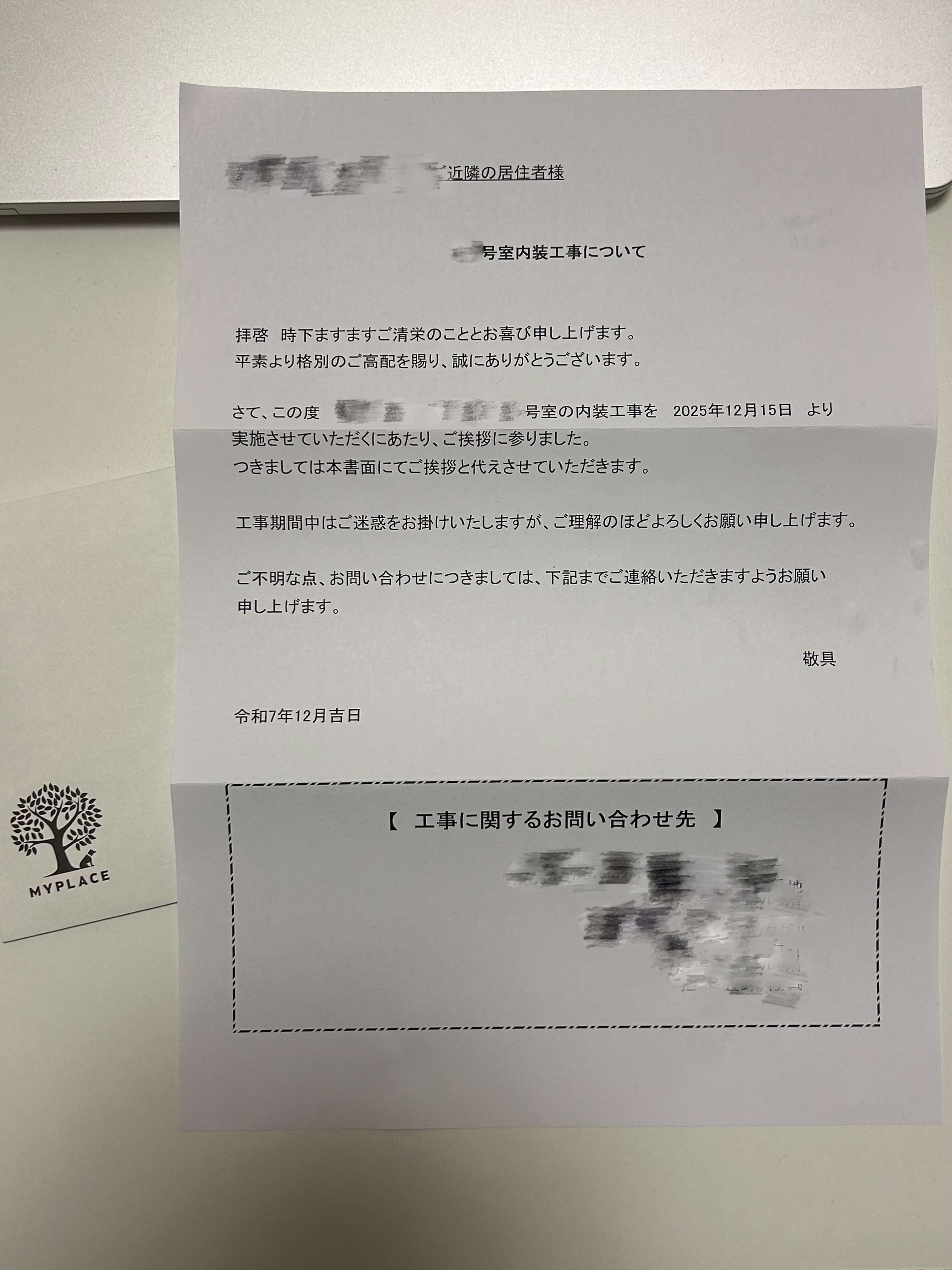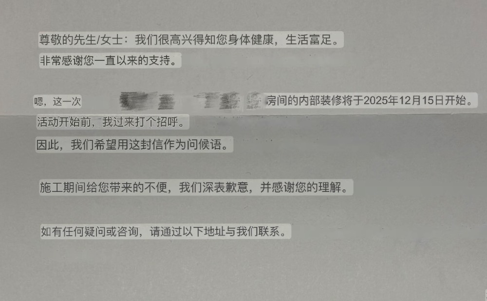 隔着好几层的邻居的装修告知信