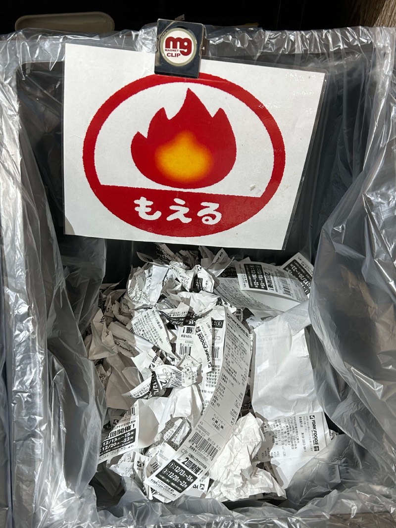 超市的收银台旁边就是收集“可燃垃圾”购物小票的垃圾箱
