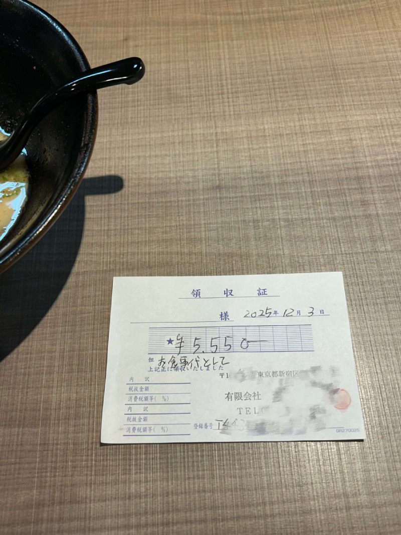 拉面店的手写收据