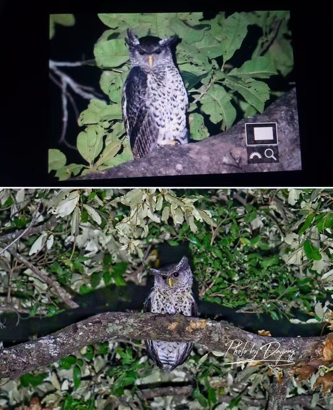 上图是2016年11月,犀鸟谷第一只被拍摄到的林雕鸮(也可能是中国第一张吧,曾祥乐摄);下图是我2025年2月在犀鸟谷拍的林雕鸮(也是时隔8年后的再见)