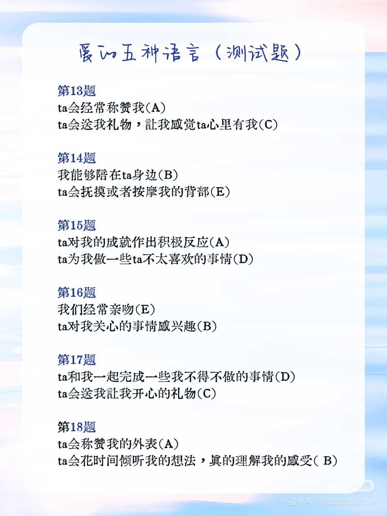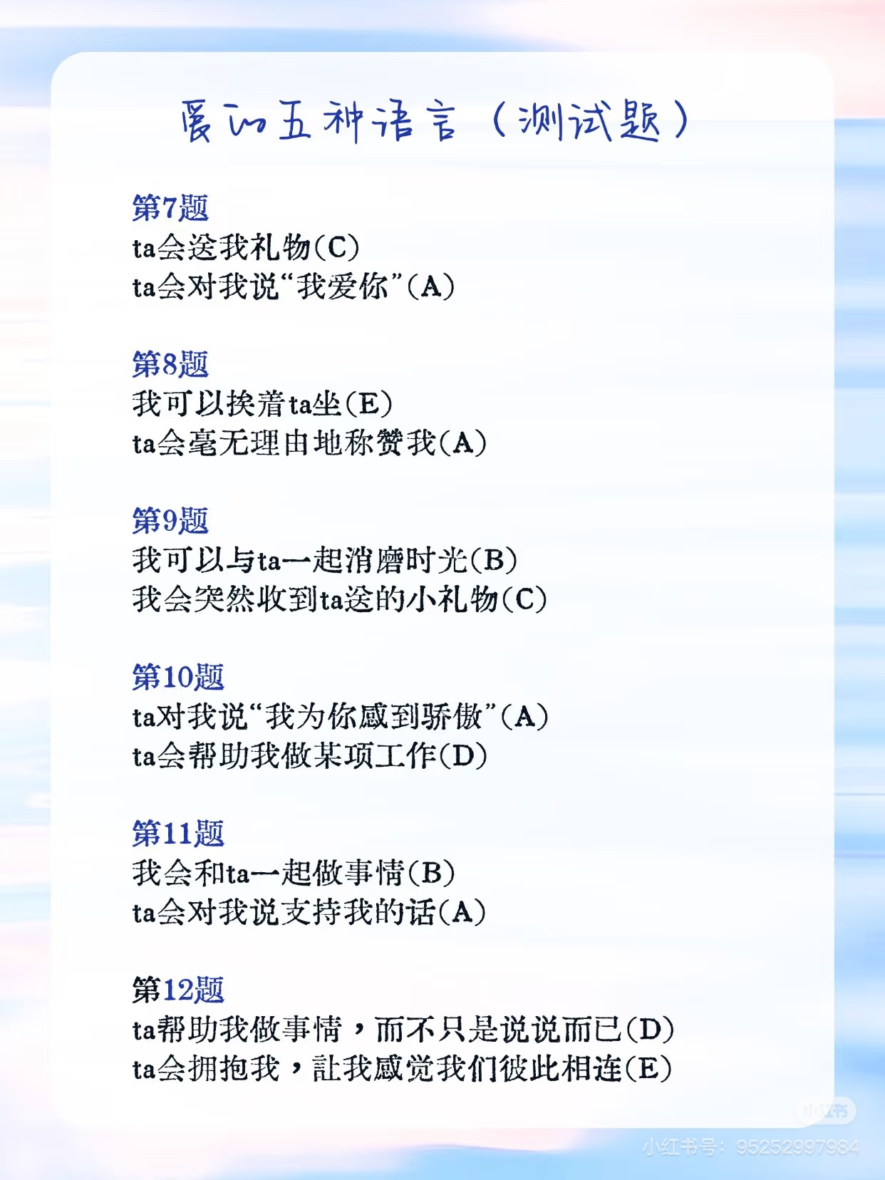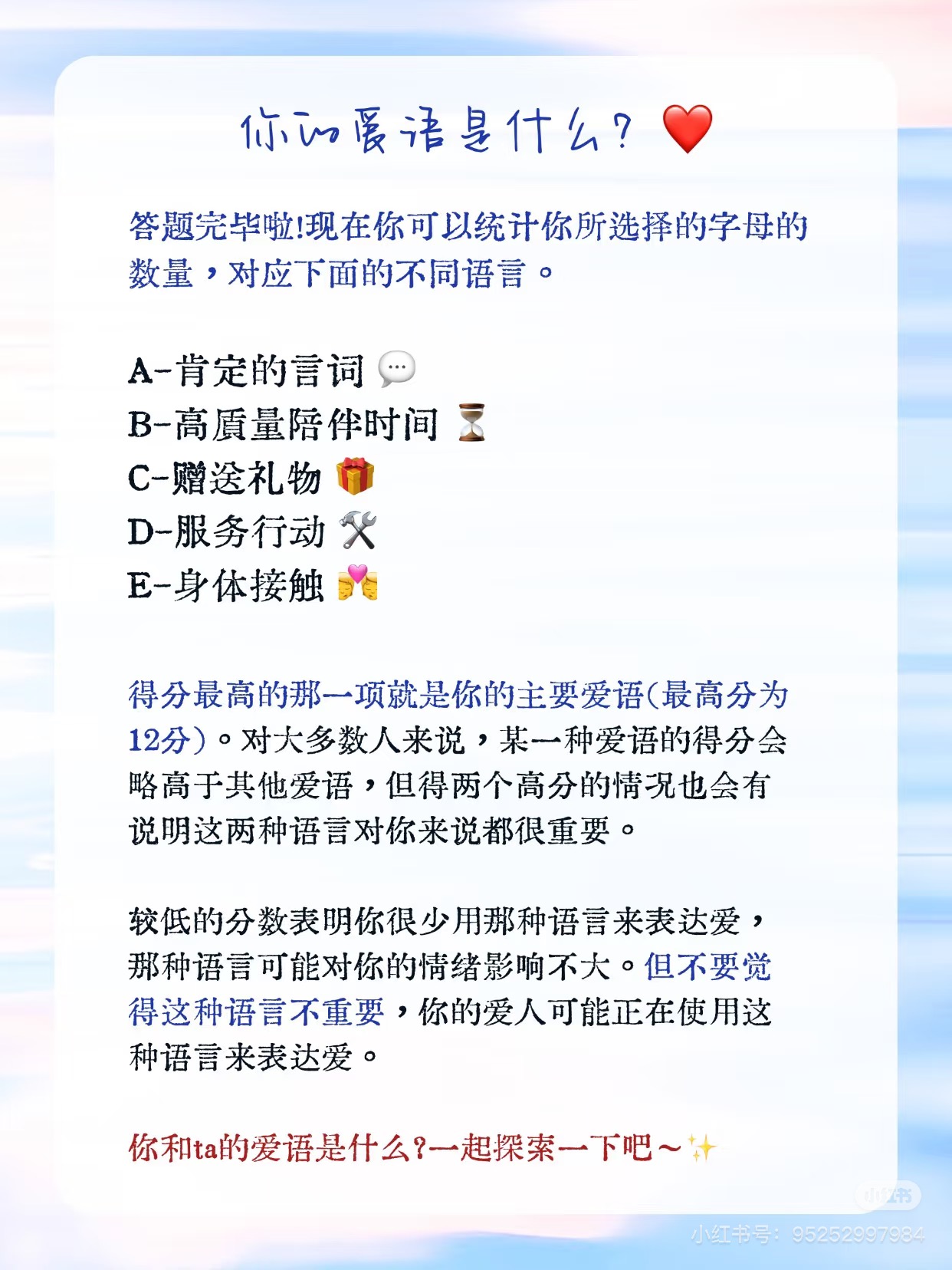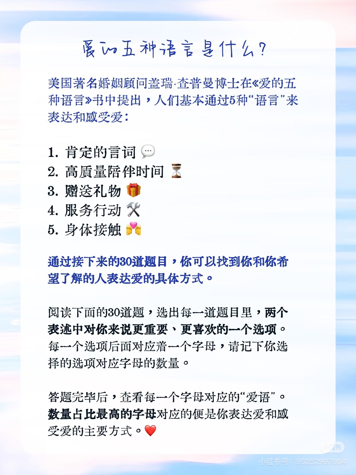- 你可以通过搜索“爱的五种语言测试”找到相关资源。