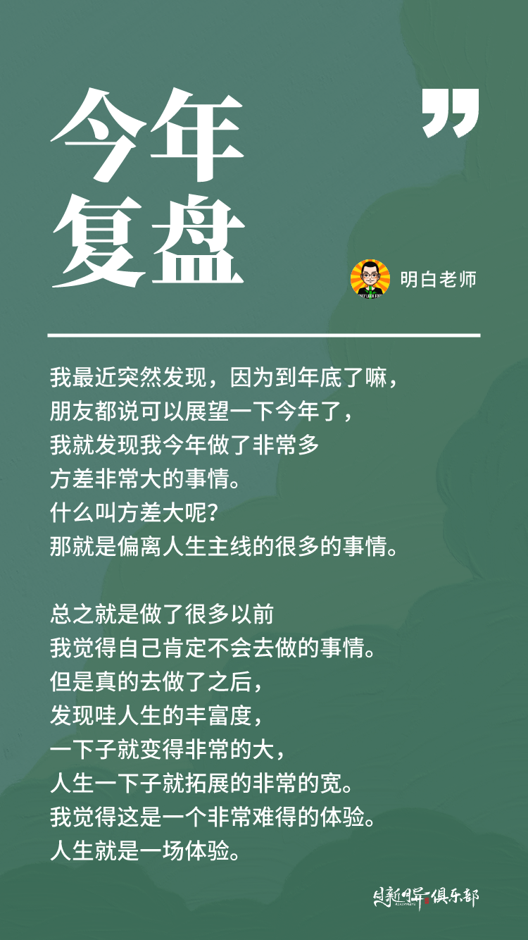 所以到了年底了,我们也可以去想一下,你今年做了哪些方差大的事情,然后给自己做一个新年的复盘,这个挺好的。