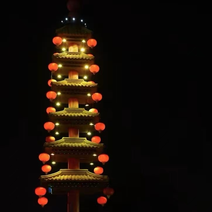 (下图:夜晚亮灯的灯杆坝)