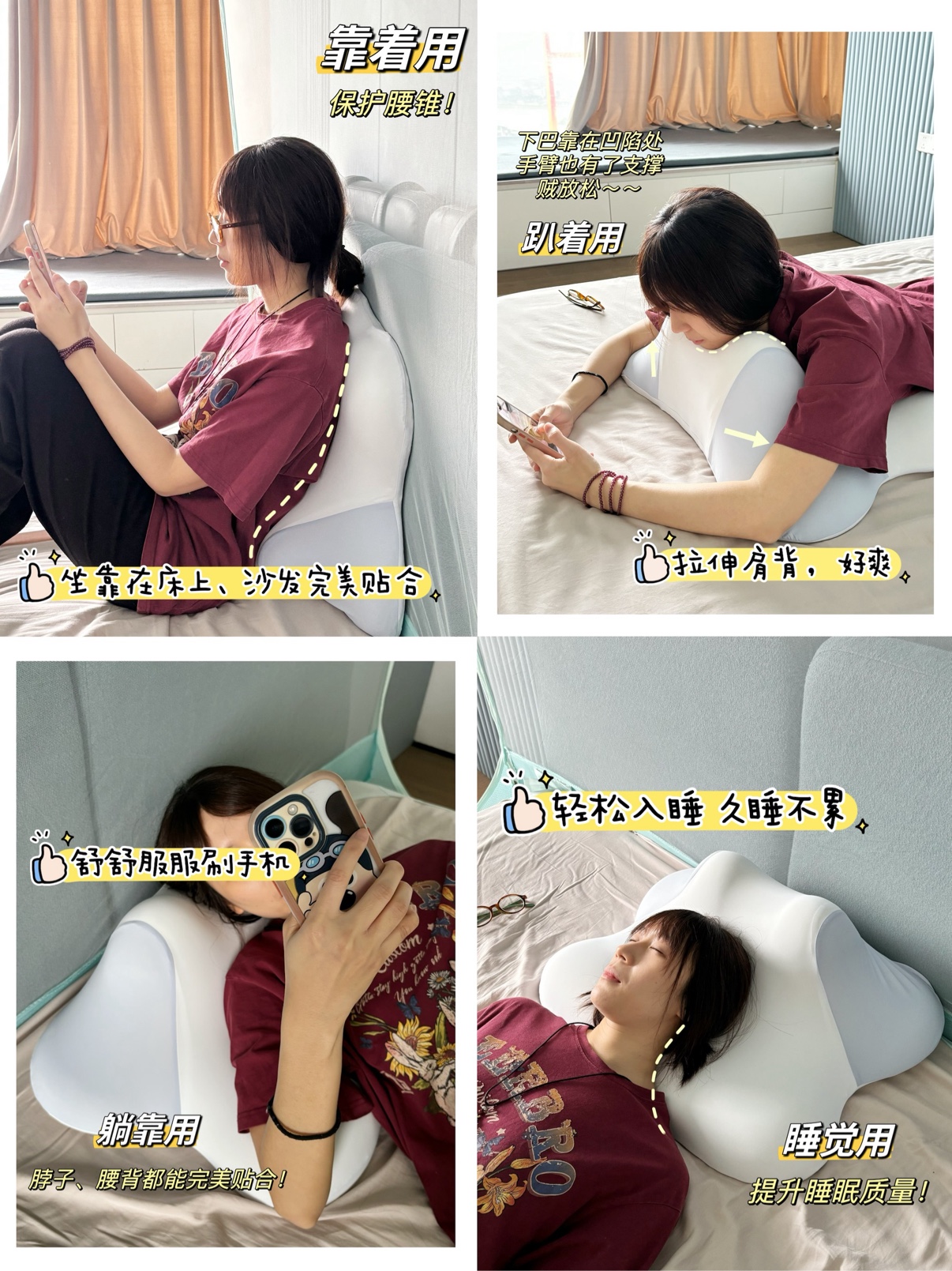 本期节目推荐的「七西趴靠自由枕」,可以适配各种姿势,让人自由躺着靠着甚至是趴着玩手机看书,很适合喜欢葛优躺的手机党,特别是小孩老人用这个对腰椎颈椎很友好。如果喜欢推荐大家试试~
