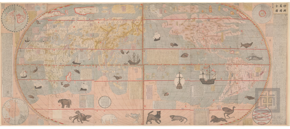 16明万历三十年(1602)意大利传教士利玛窦绘制《坤舆万国全图》