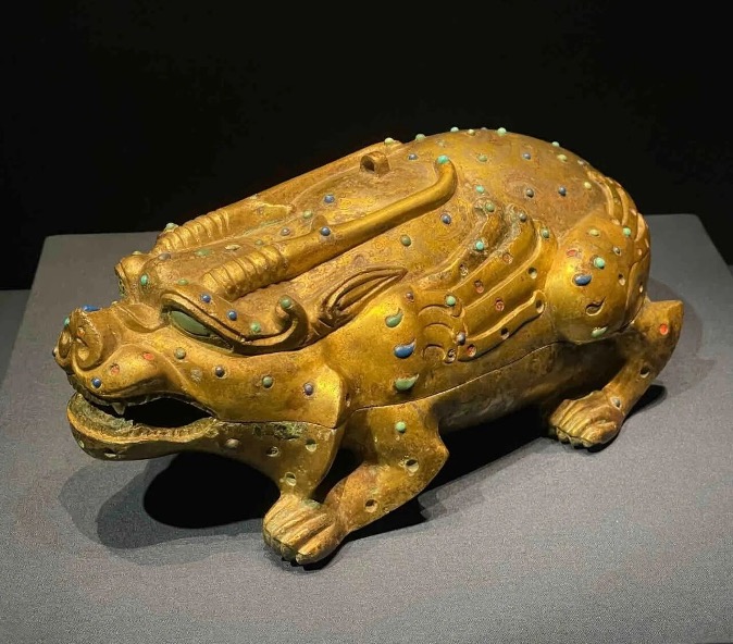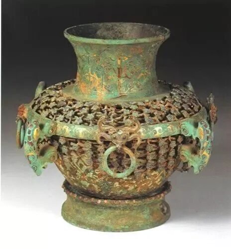 3战国错金银镶嵌丝网套铜壶,也叫陈璋圆壶