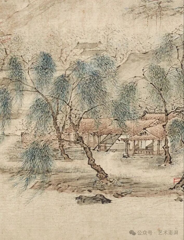 庞莱臣后人捐给南京博物院的明代仇英《江南春》图卷(局部),2025年出现在北京一拍卖公司预展中。图源:澎湃新闻