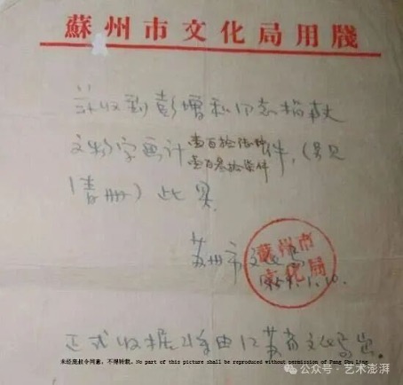 1959年,苏州市文化局代表江苏省文化局收到庞家捐赠文物字画的暂时收据