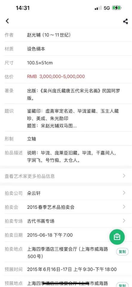 关键词:南京博物院、仇英、《江南春》、拍卖、伪作、故宫一件我一件、故宫没盖我有盖儿、庞莱臣、庞叔令、徐莺、徐湖平、举报、8800万