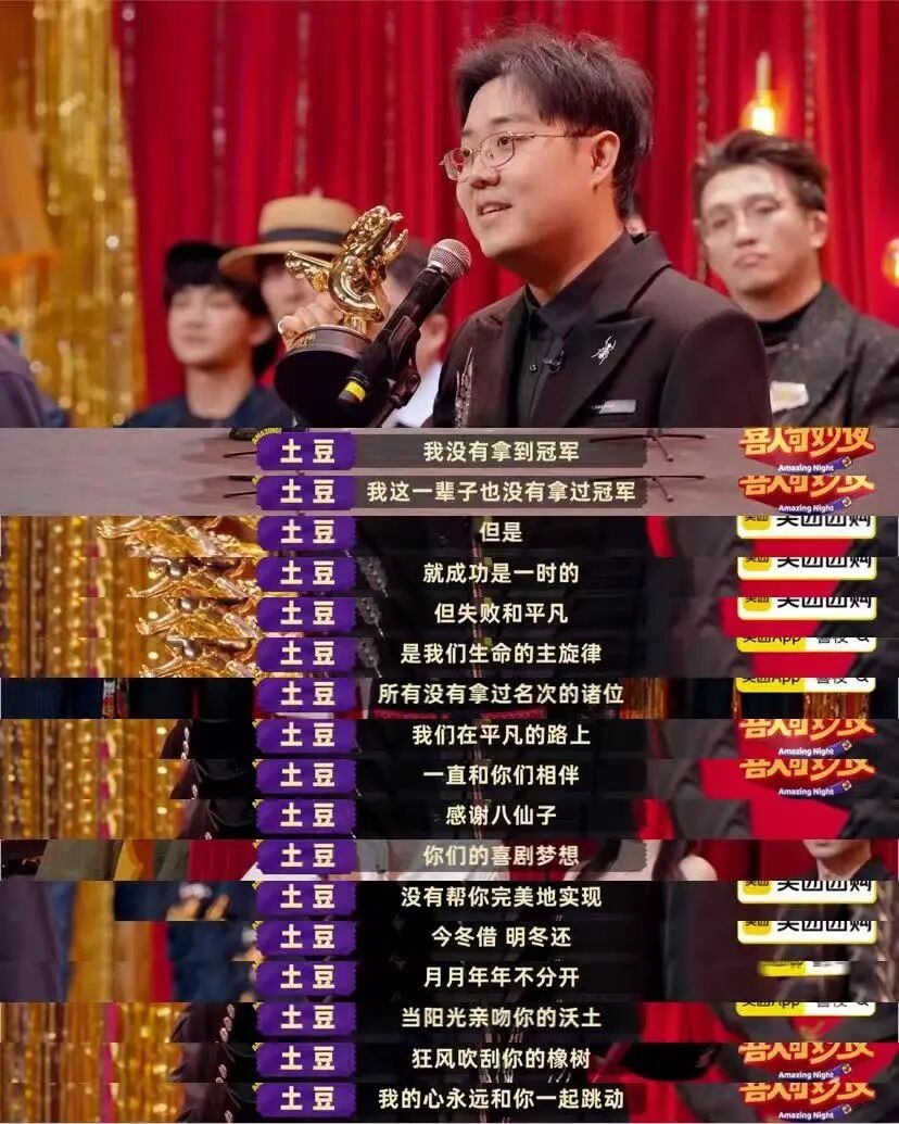 今年,在《喜人奇妙夜2》的结尾, 土豆说了2025 年最能安慰到我的一段话: