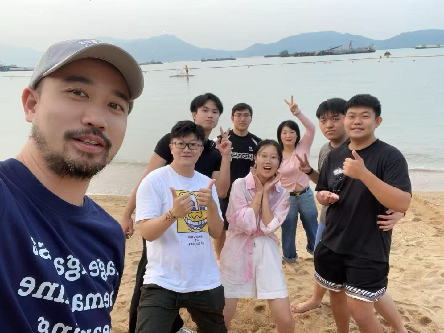 (图2,2024年10月29日,上学期期中考试完,第一次海边烧烤放松——屯门蝴蝶湾,我们自己去市场采购、穿串、生活、烧烤——本图源自美图大神东哥(左二),原图已丢失。。。)