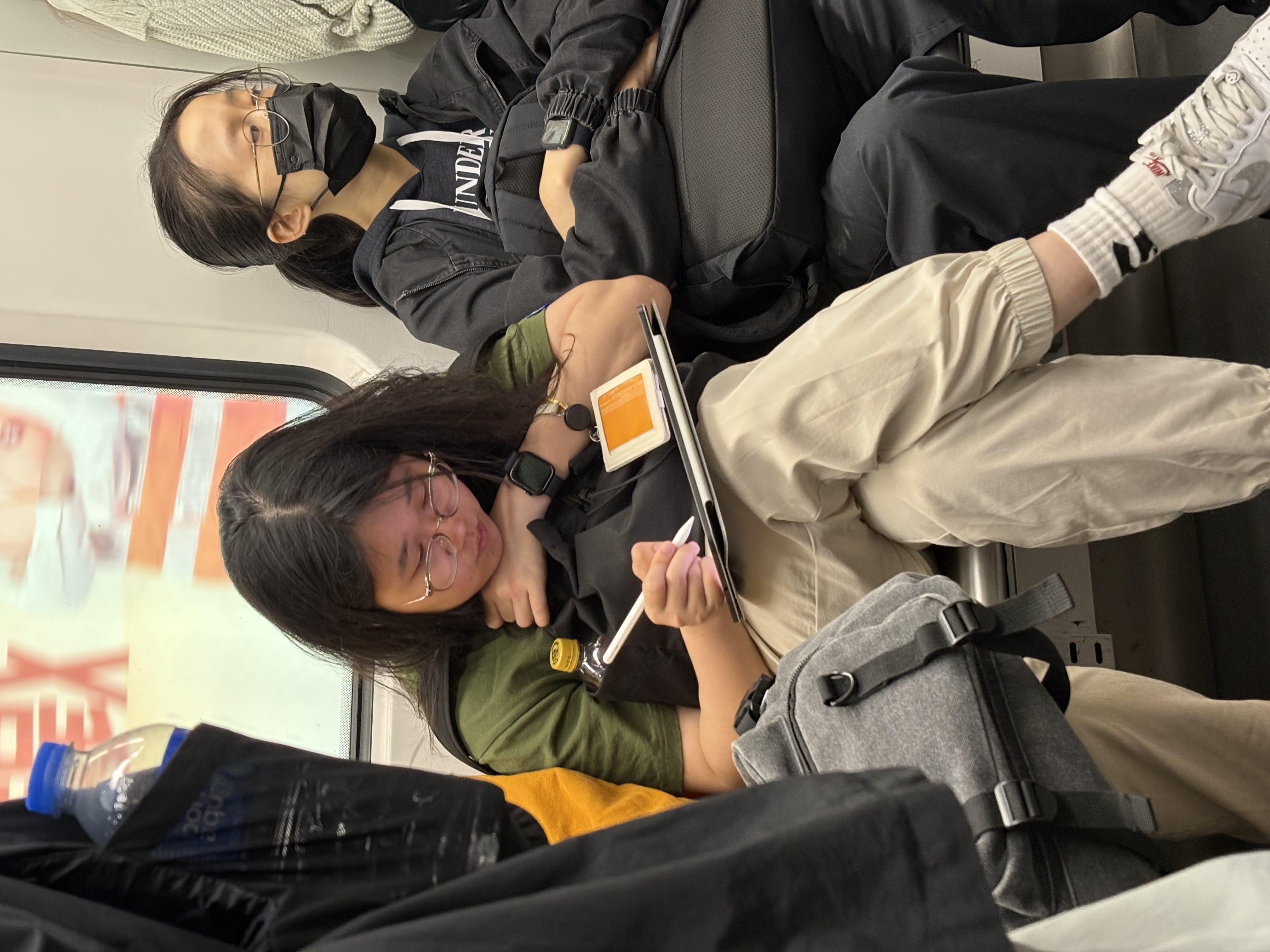 (图7,2025年4月14日,下学期期末临近,我们一起在地铁回学校的路上,佳琪在准备给大家讲期末复习的备考题)