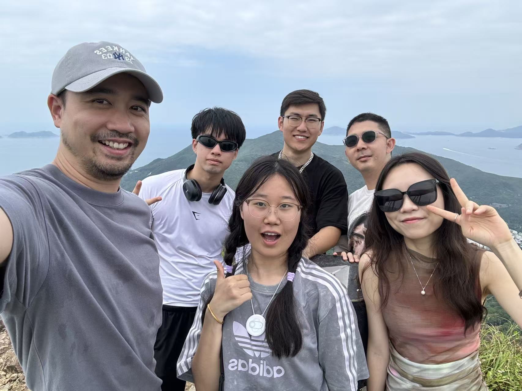 (图1,2024年10月11日,第一次登香港的野山,邀约钓鱼翁,登顶后大家的合影)