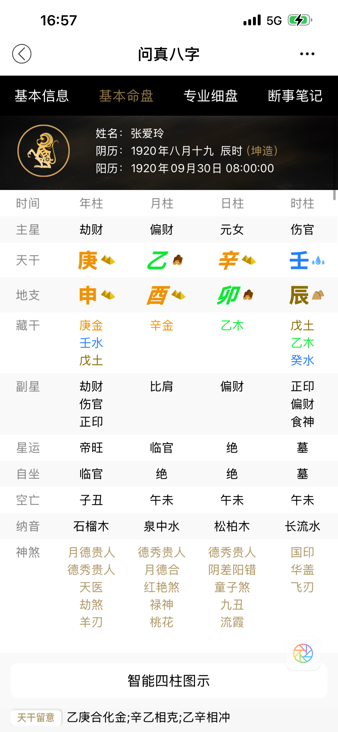 06:40 张爱玲八字定盘:庚申 乙酉 辛卯 壬辰